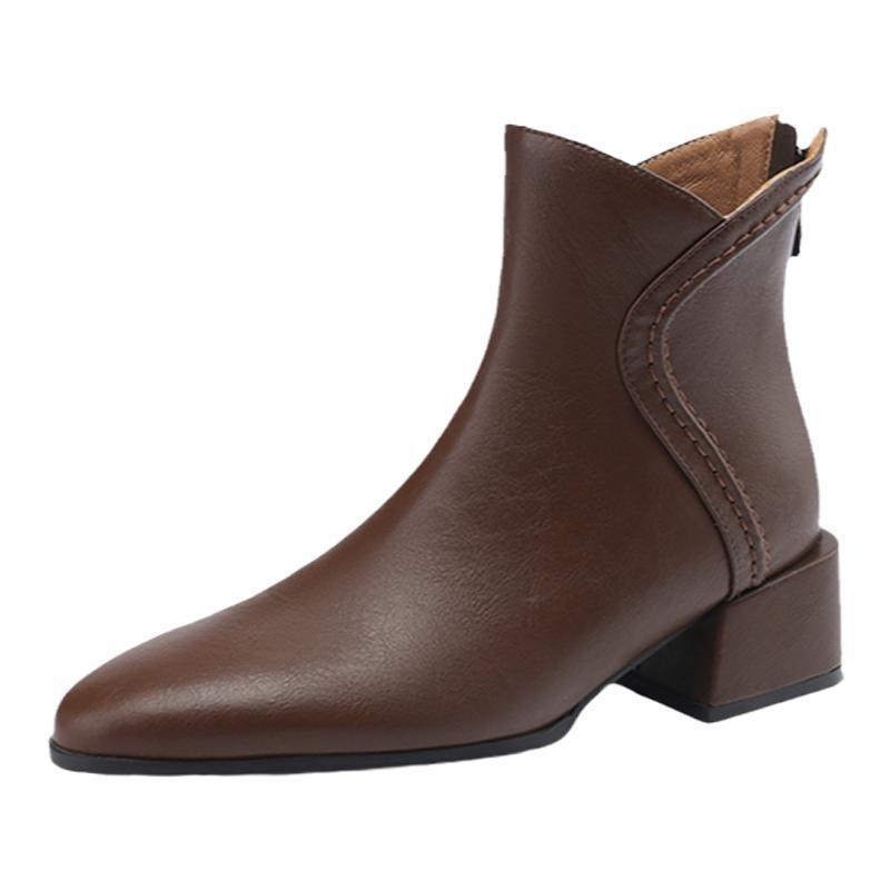 Винтажные коричневые ботильоны с острым носком и толстым каблуком женские весенне-осенние одинарные ботинки в британском стиле на среднем каблуке ботинки челси