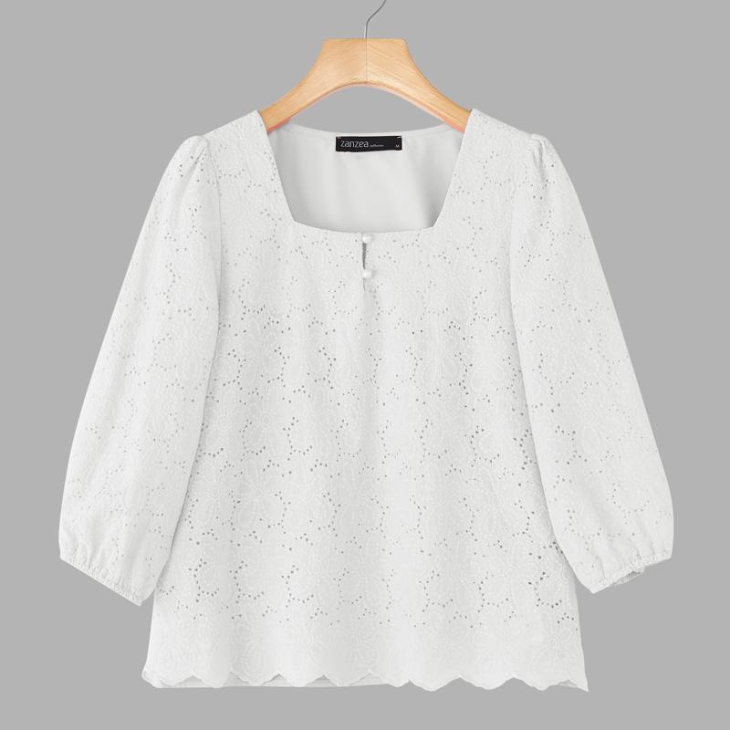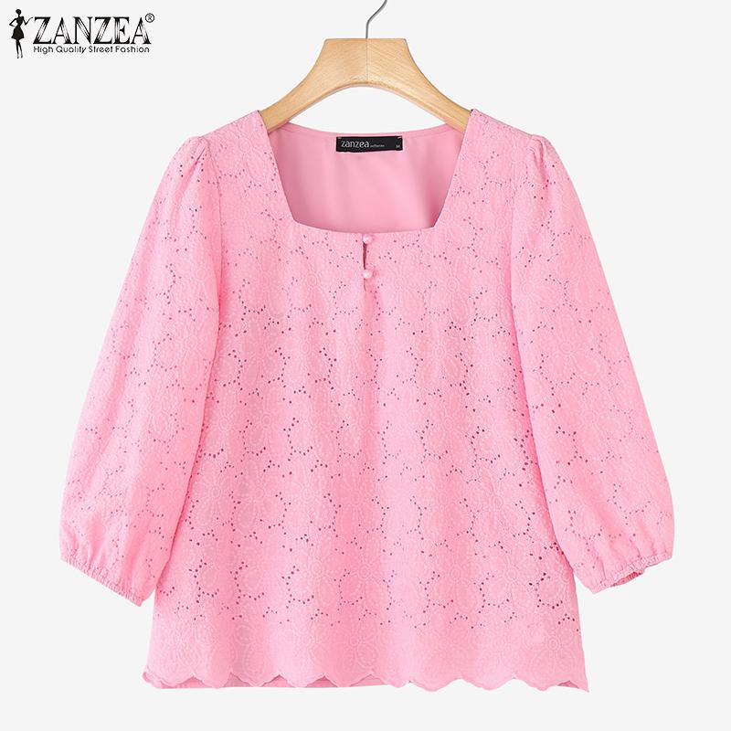 ZANZEA Женская повседневная блузка с квадратным вырезом, рукавом 3/4, свободного кроя, с кружевной вставкой в стиле пэчворк