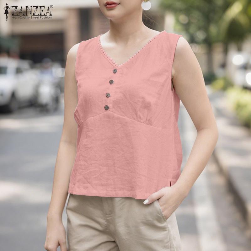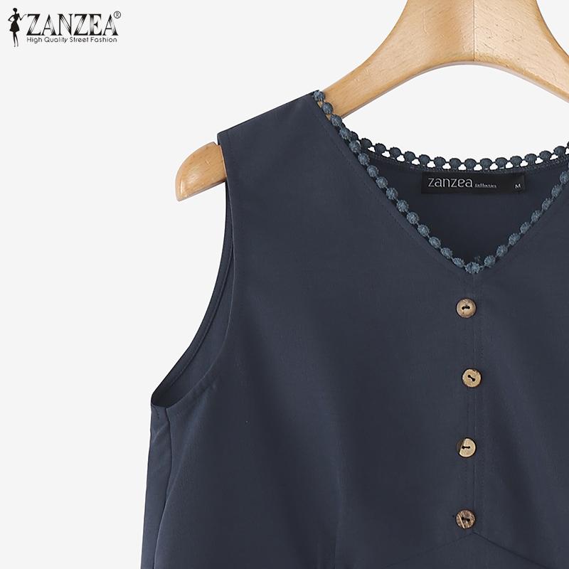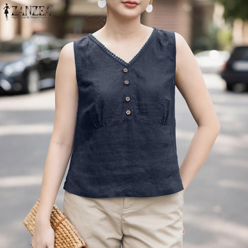 ZANZEA Женские повседневные летние майки без рукавов с V-образным вырезом