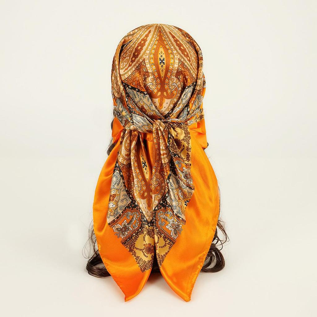 Универсальный женский квадратный шарф 90 см из атласа шармез - Новый принт под имитацию шелка, стиль FJ007