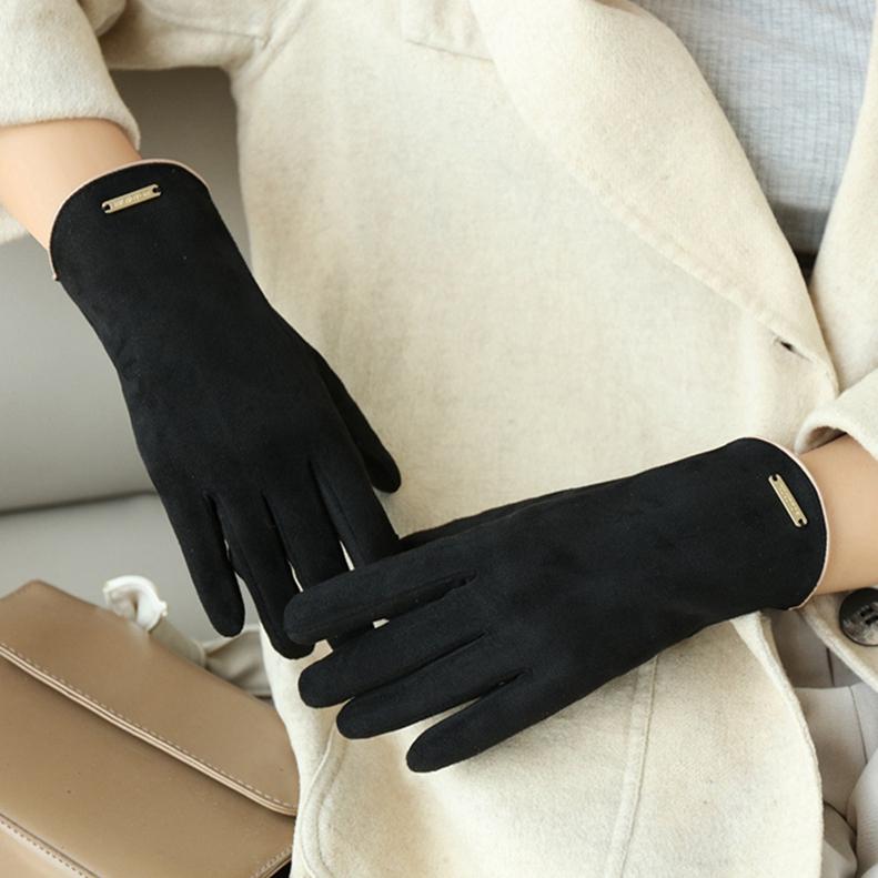 Женские перчатки с сенсорным экраном, модные варежки, осенне-зимние теплые тонкие кашемировые велосипедные замшевые ветрозащитные перчатки LXY