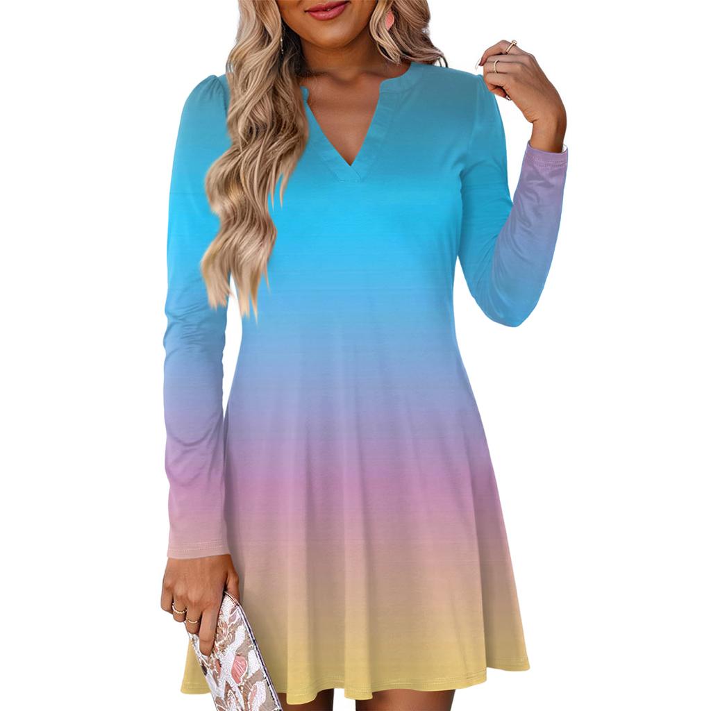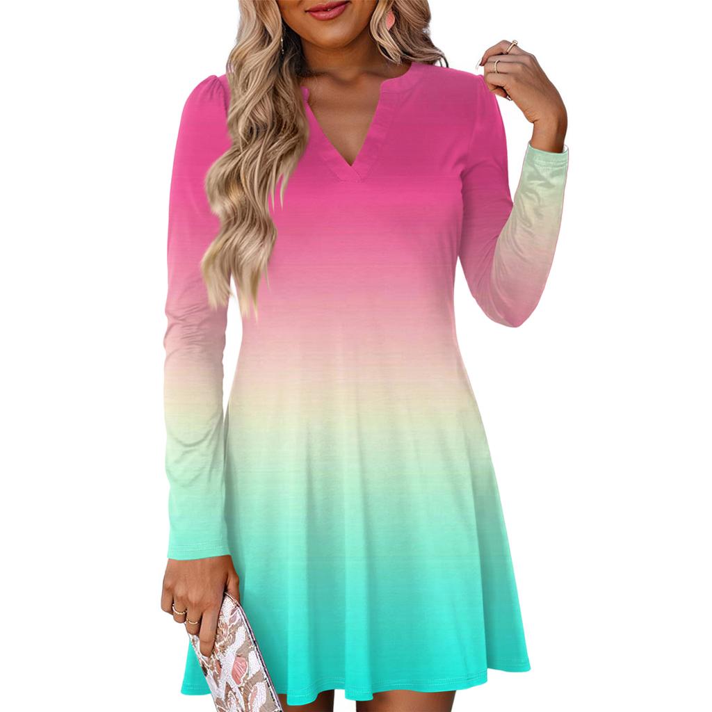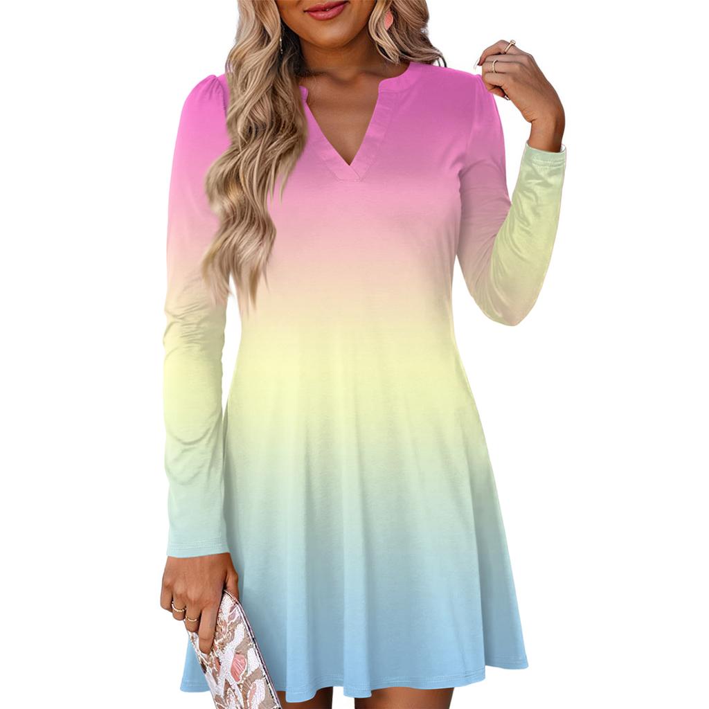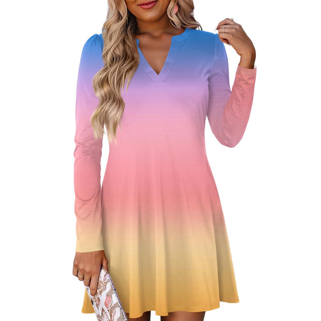 Женское модное платье с градиентным V-образным вырезом и длинными рукавами