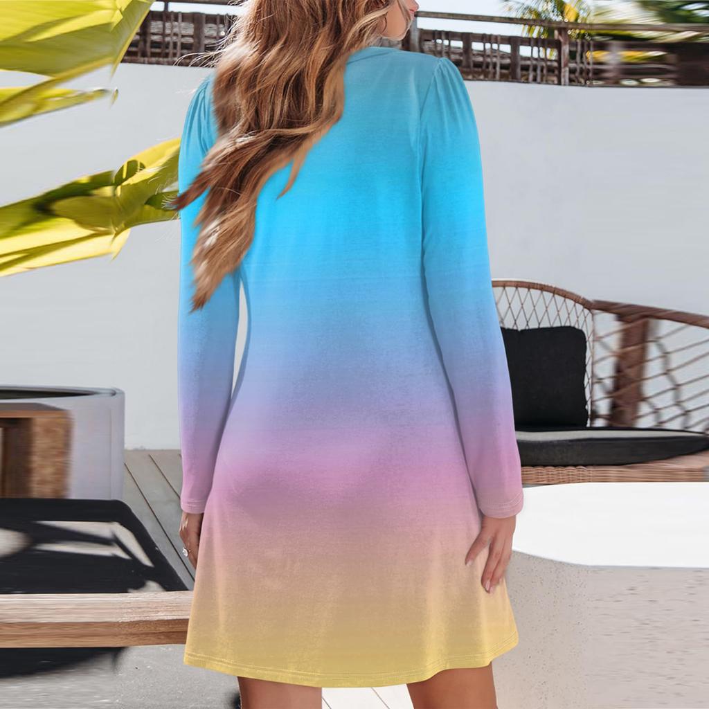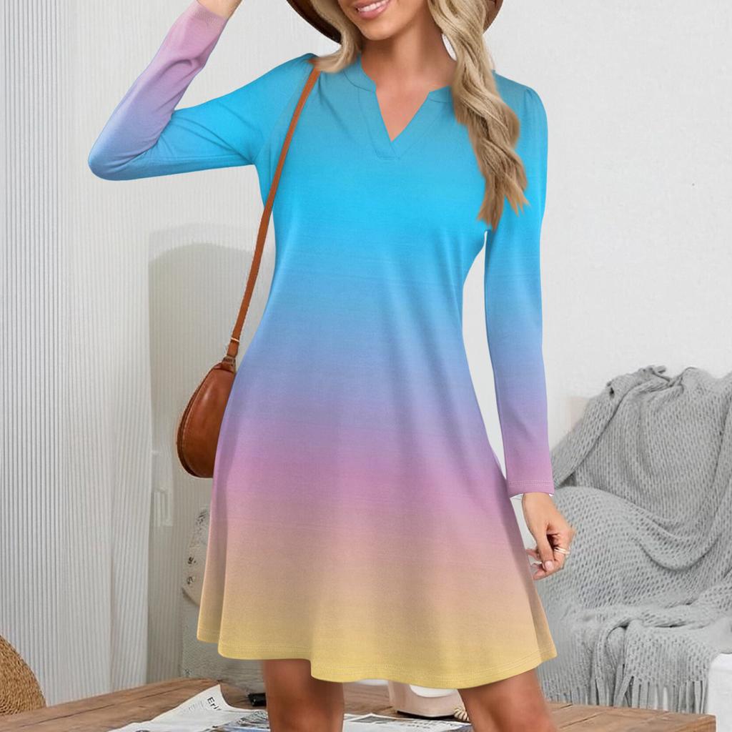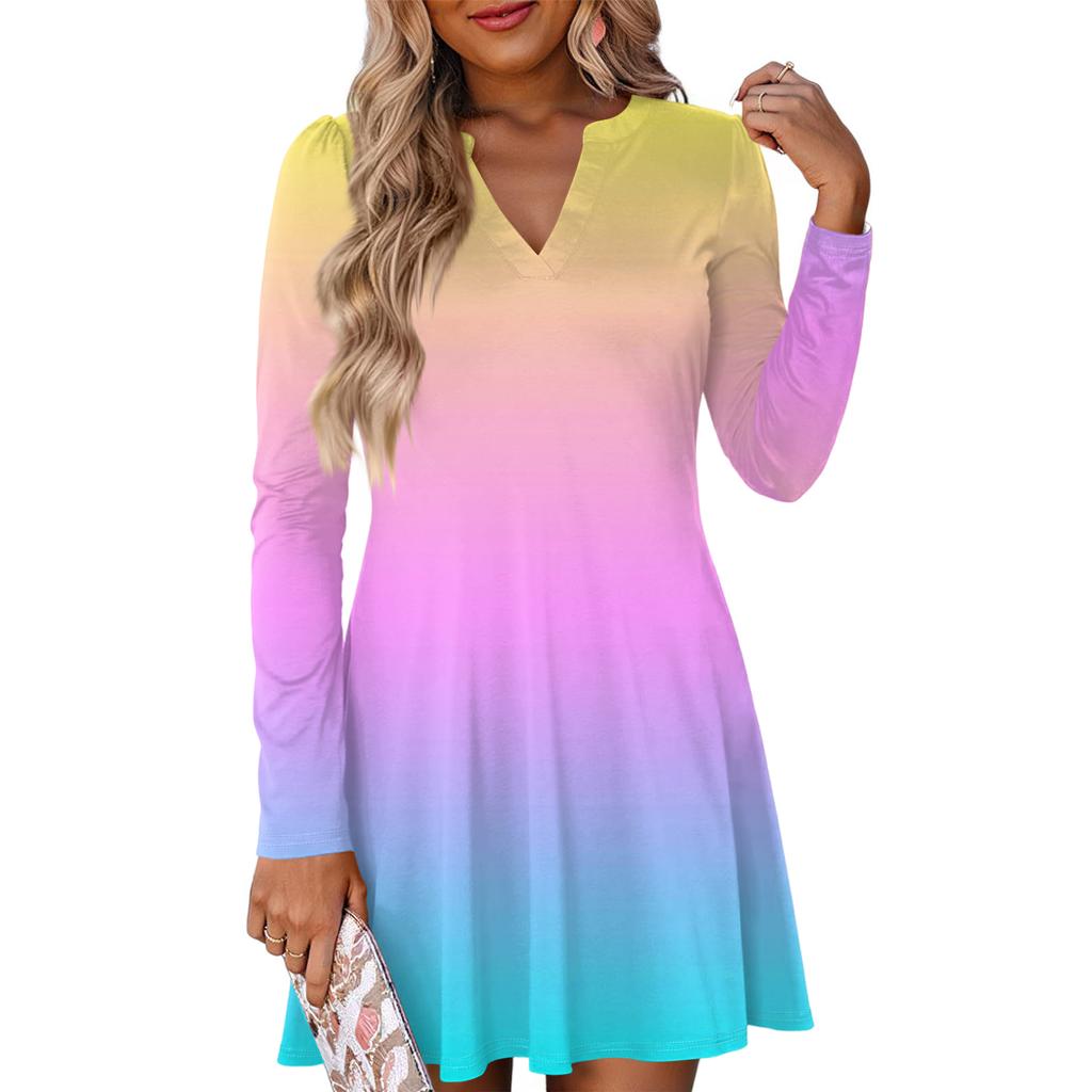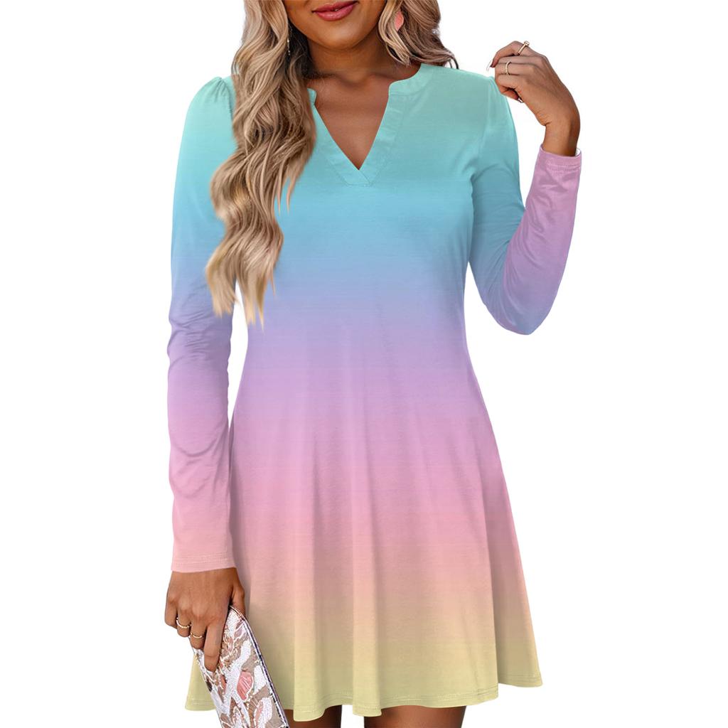 Женское модное платье с градиентным V-образным вырезом и длинными рукавами
