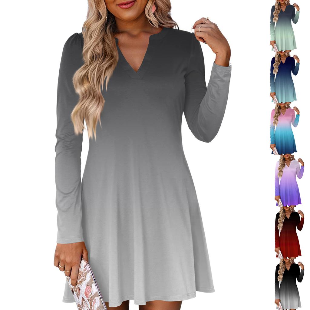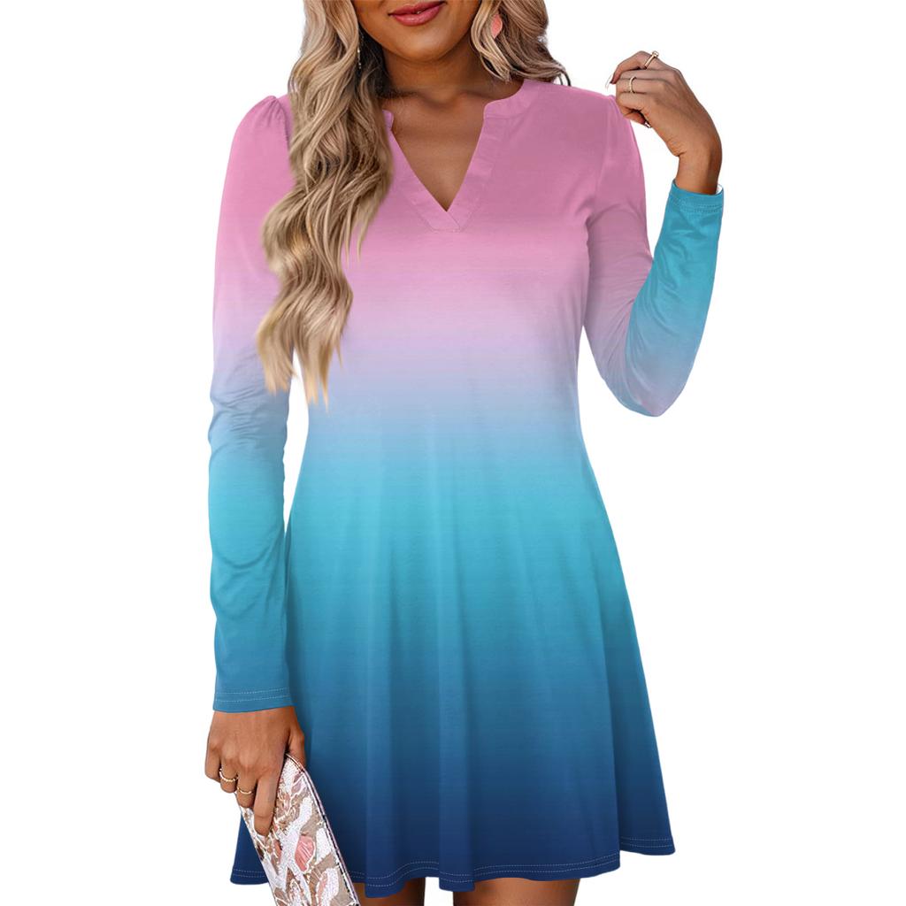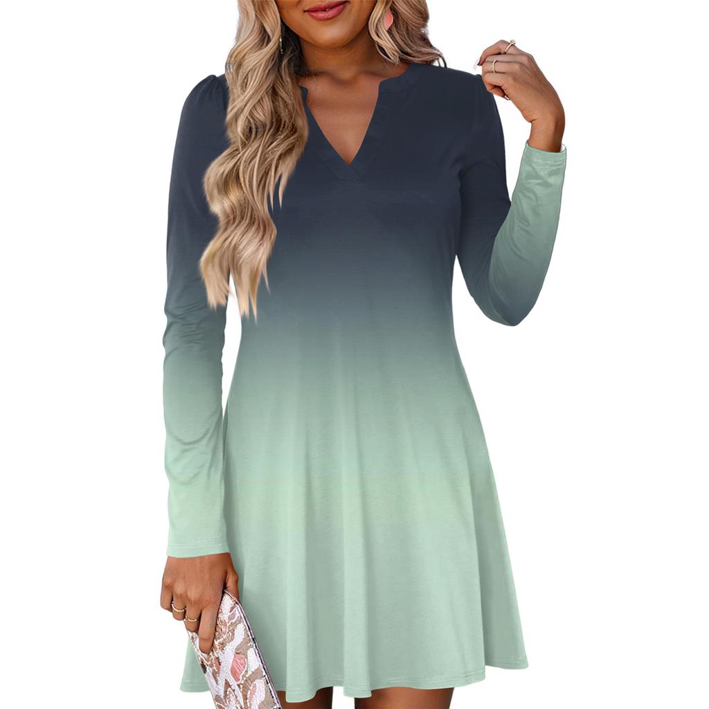 Женское модное платье с градиентным V-образным вырезом и длинными рукавами