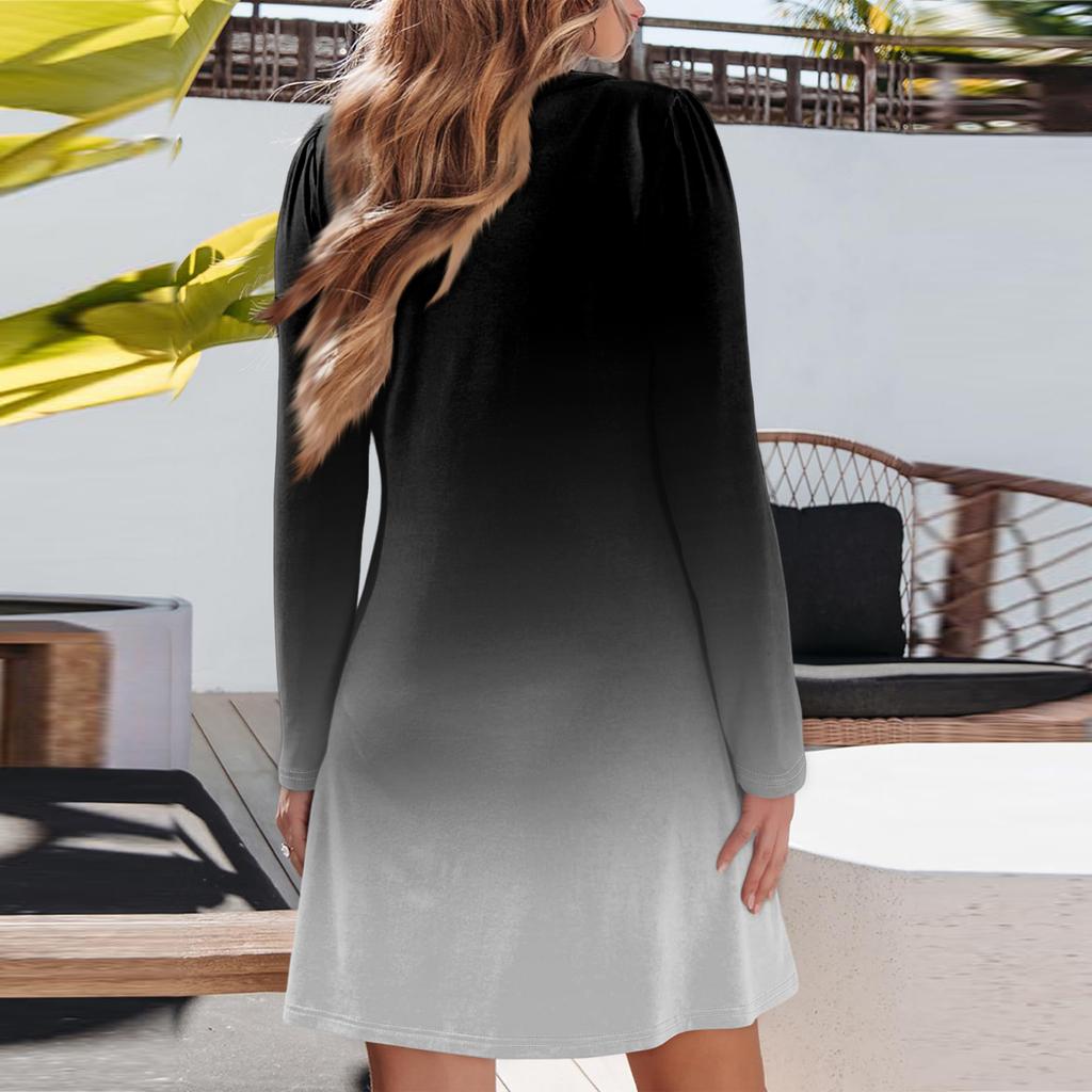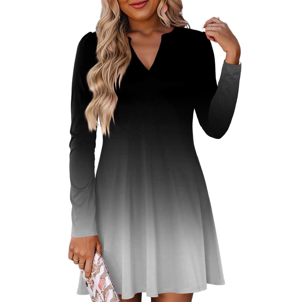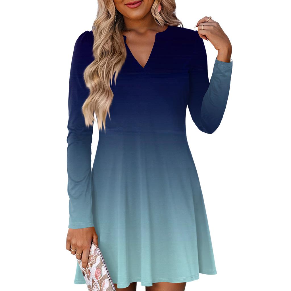 Женское модное платье с градиентным V-образным вырезом и длинными рукавами