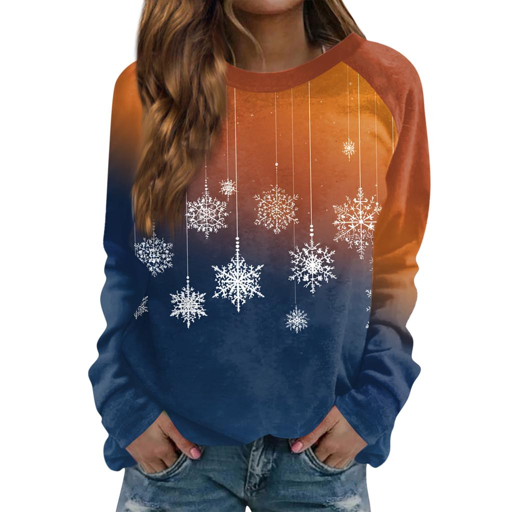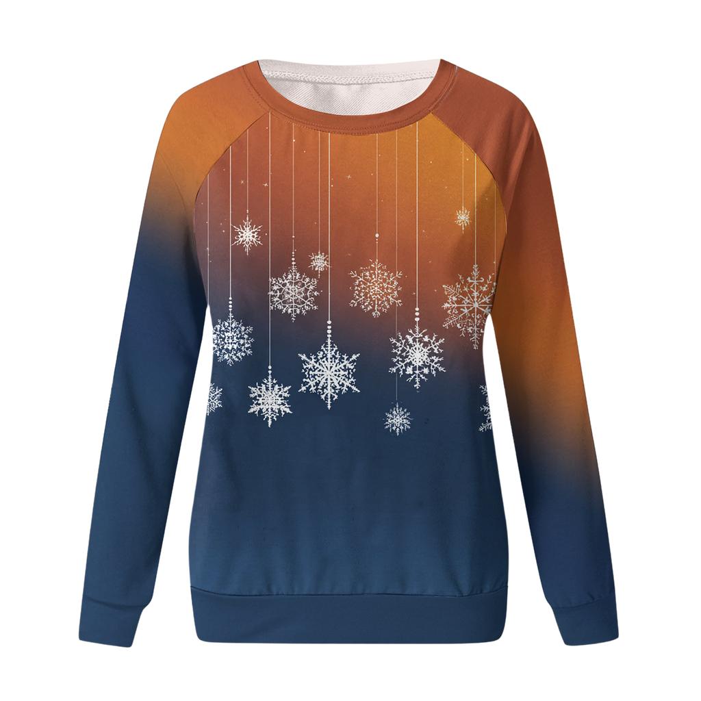 Женский модный повседневный свитшот с длинным рукавом и рождественским принтом на шее