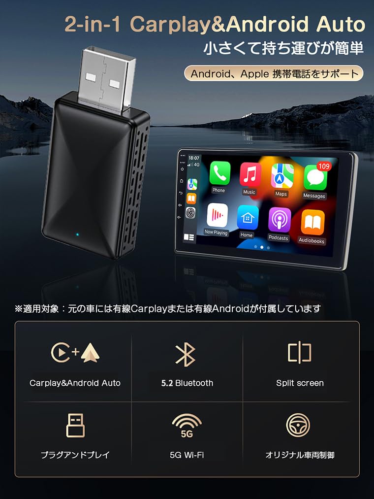【Пожалуйста, прочитайте перед покупкой】1. Пожалуйста, убедитесь, что этот беспроводной адаптер CarPlay и беспроводной Android Auto поддерживает проводное воспроизведение в автомобиле и Android Auto.. 2. Чтобы реализовать функцию беспроводного воспроизведения в автомобиле, вам необходимо использовать смартфон iPhone 6 или выше с iOS 10 или выше.. 3. Вам нужен смартфон Android, поддерживающий новейшую функцию Android Auto. Используйте операционную систему Android 11 или более позднюю версию для выполнения беспроводных функций Android Auto.