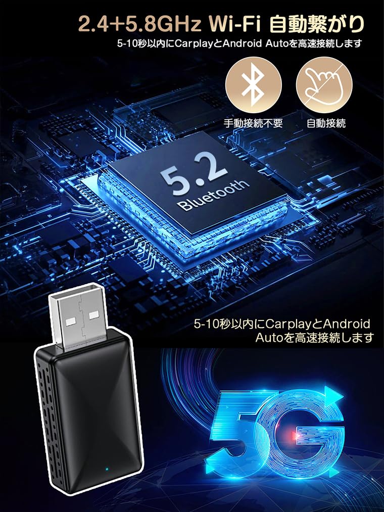 [Высокая скорость и улучшенная стабильность соединения] Вам не нужно переподключать его после поездки в магазин за покупками с вашим iPhone во время вождения. Один раз последовательно, а со следующего раза будет подключаться автоматически (до нескольких секунд) после запуска двигателя. Полностью беспроводной без задержек! Этот беспроводной адаптер CarPlay оснащен модулем 5G Wi-Fi, позволяющим вам наслаждаться самым быстрым, стабильным и бесперебойным опытом CarPlay, который когда-либо был.. Если вы беспокоитесь о потере качества звука ваших песен из-за беспроводной связи, попробуйте этот продукт. Ваш опыт CarPlay изменится!