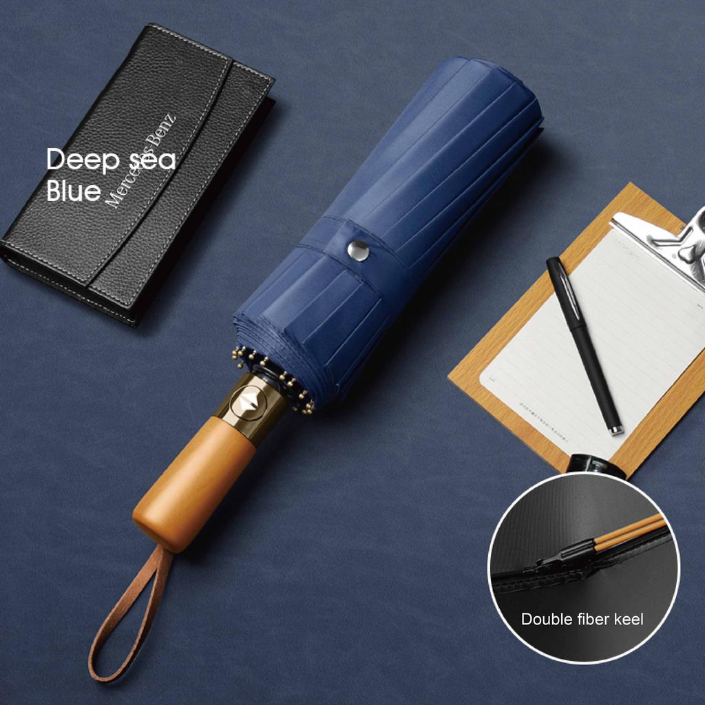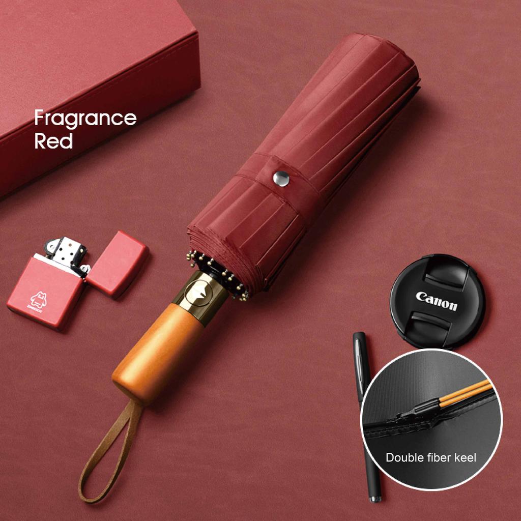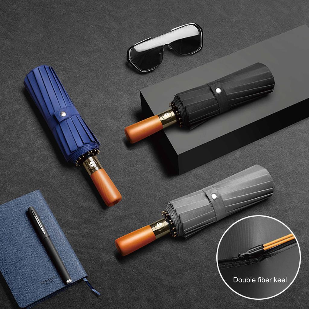 Новый трехслойный деловой автоматический складной зонт, ретро деревянная ручка, усиленный ветроустойчивый, увеличенный купол, мужской