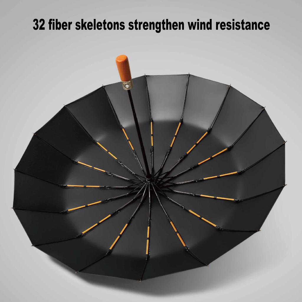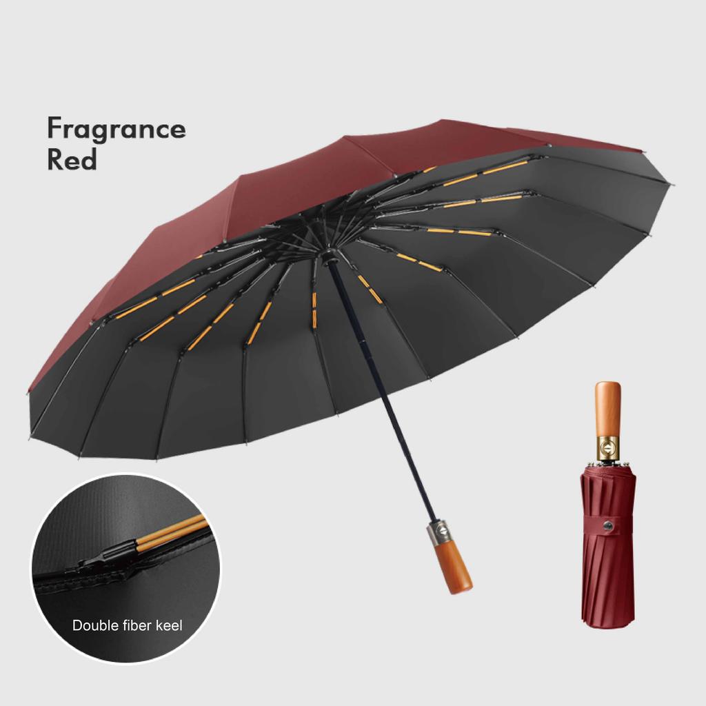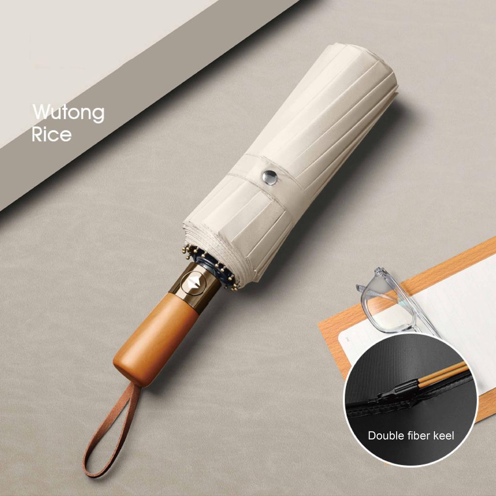 Новый трехслойный деловой автоматический складной зонт, ретро деревянная ручка, усиленный ветроустойчивый, увеличенный купол, мужской