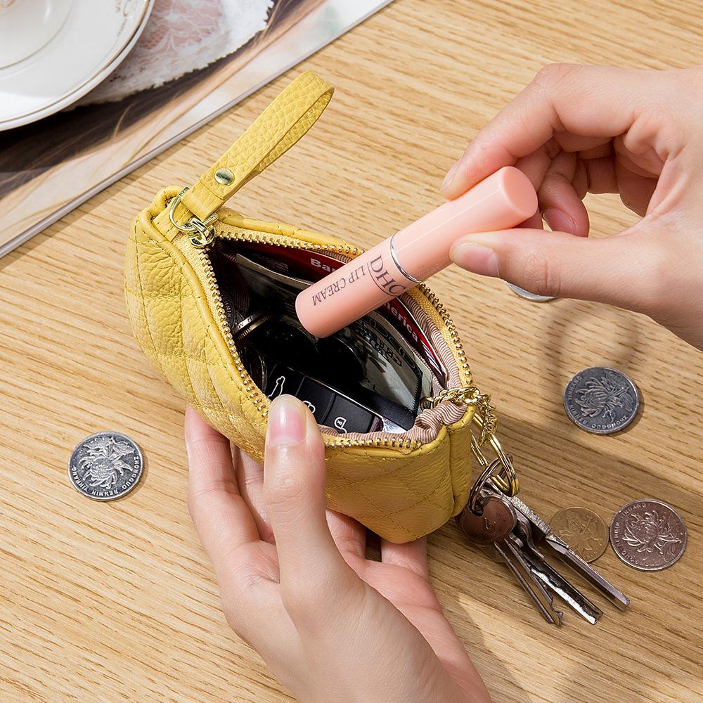 Вышитый ромбовидный кошелек для мелочи, сумка для хранения монет, мини-сумка из коровьей кожи на простой молнии, ключница для женщин