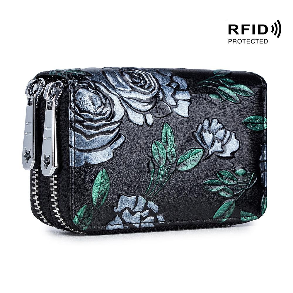 Расписной кошелек для карт из коровьей кожи, большой вместимости, для нескольких карт, с защитой от РЧ-сканирования RFID, многофункциональный кошелек для мелочи с двойной молнией.
