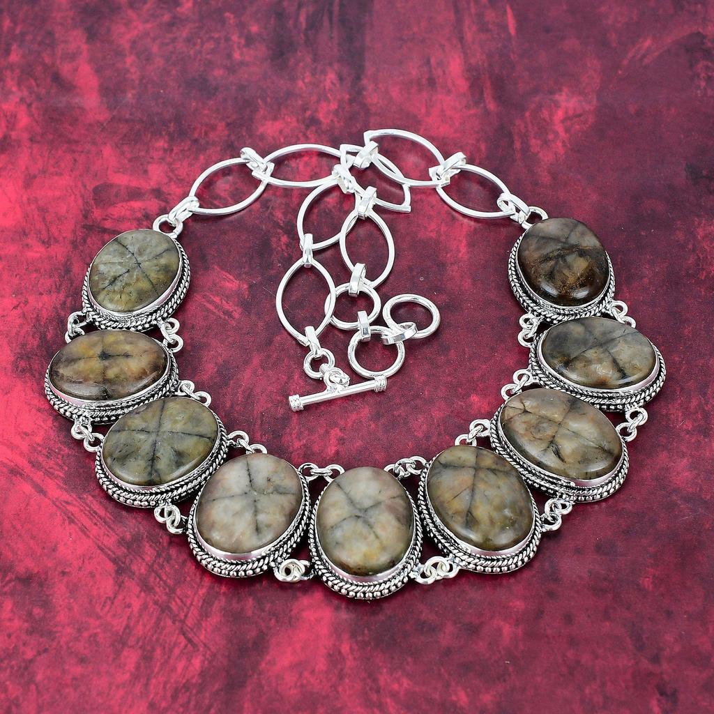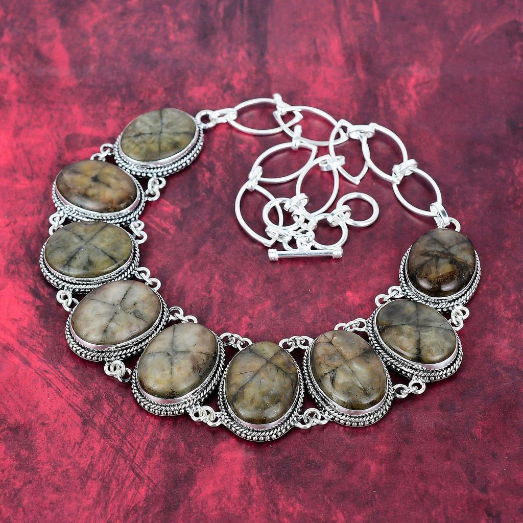 Колье с киастолитом, ювелирное изделие из драгоценного камня, колье с регулируемой цепочкой из стерлингового серебра 925 пробы, подарок для женщин, колье ручной работы