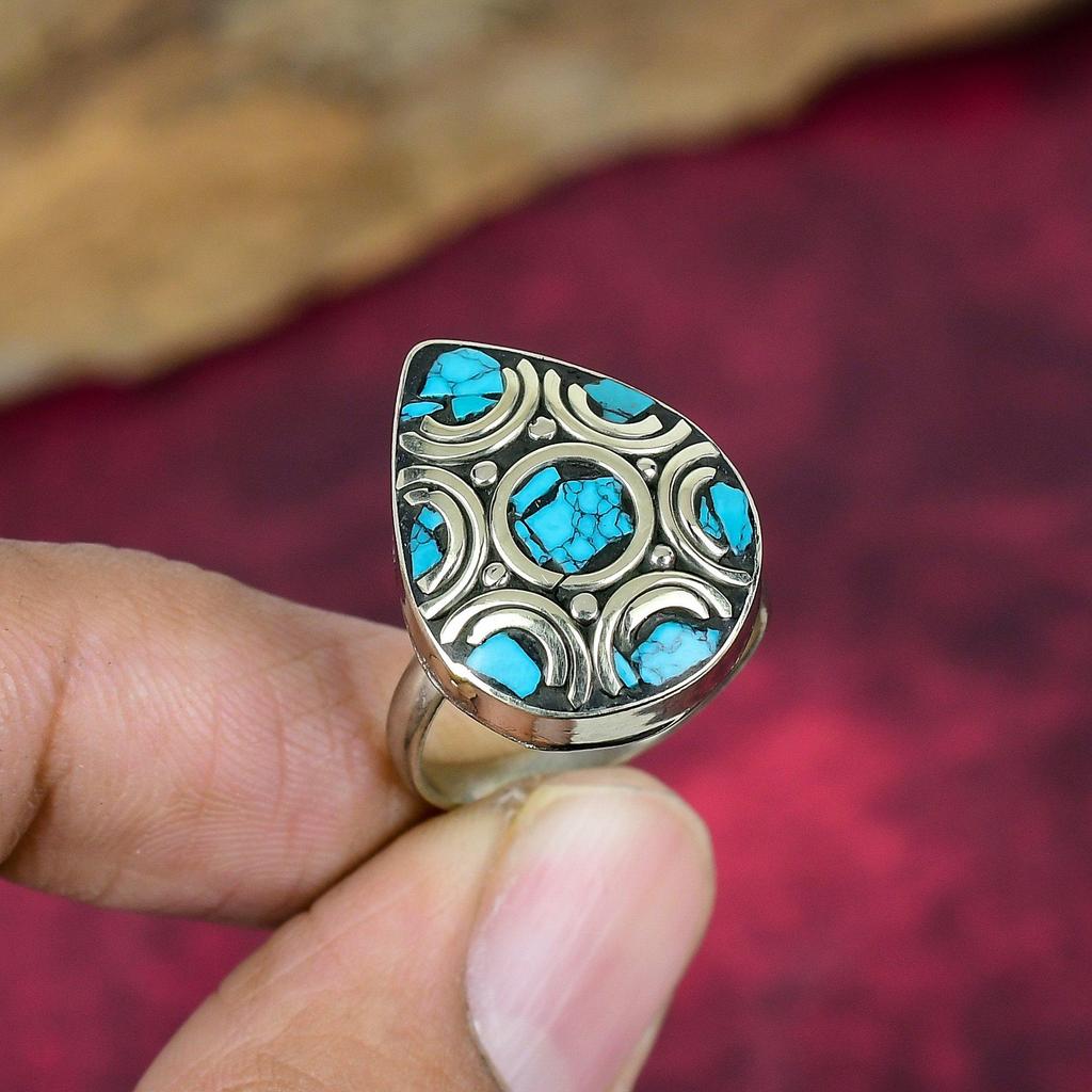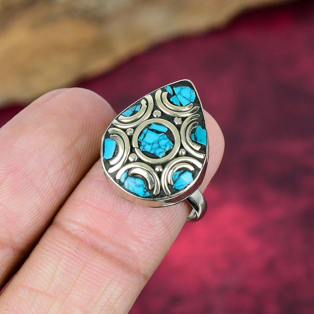 Синее Бирюзовое Цельное Стерлинговое Серебро Непальское Кольцо, Кольцо с Драгоценным Камнем Ручной Работы, Подарки для Матери Совершенно Новое Регулируемое Кольцо