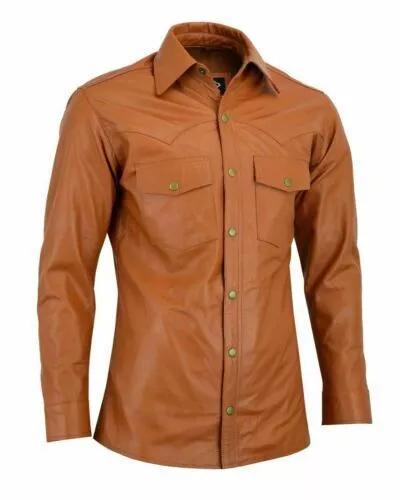 Новая мужская рубашка песочного цвета из натуральной овчины, оригинальная кожа, ручная работа, стильная байкерская мотоциклетная