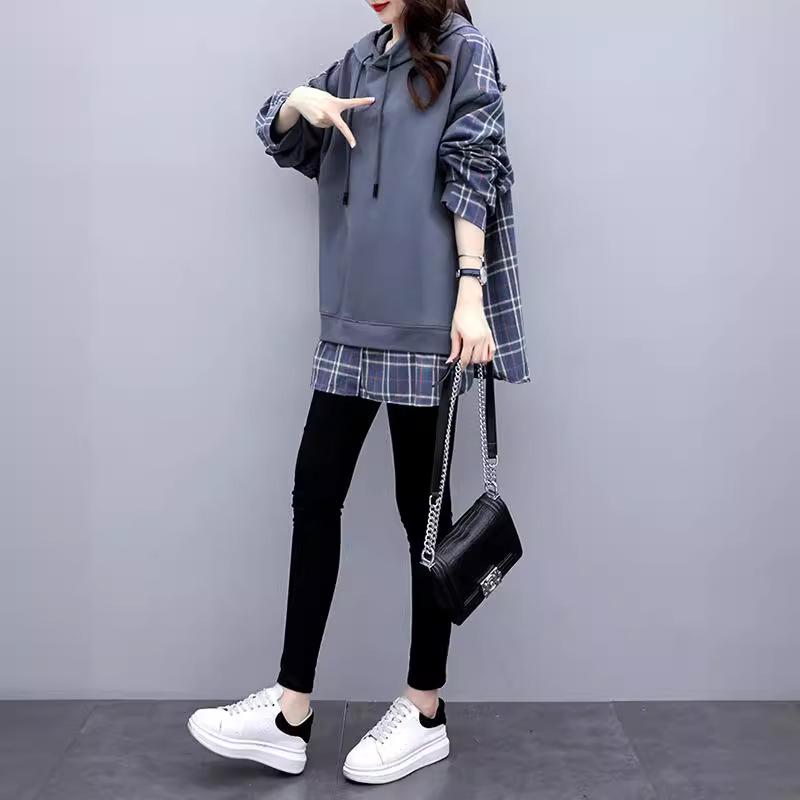 Хлопковая толстовка с капюшоном для женщин - Имитация двойки, корейский стиль, свободный крой, новый тренд весны и осени 2022