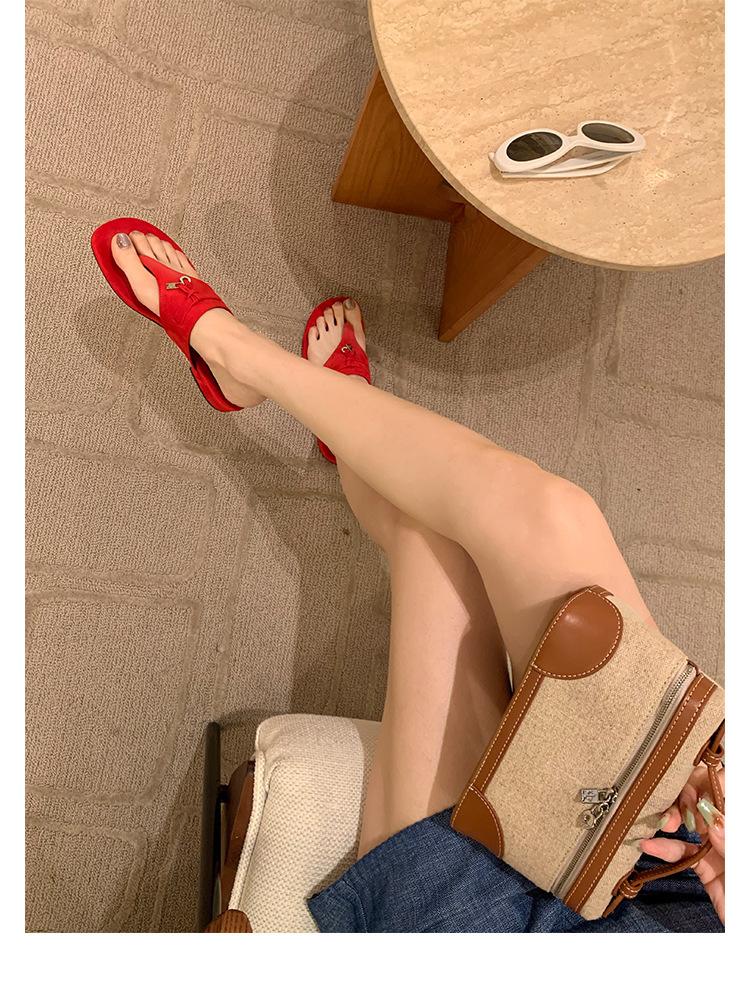 [] lp жена драг~ металлическая пряжка кисточка носок плоская подошва елочка крутые тапочки женские носить лето