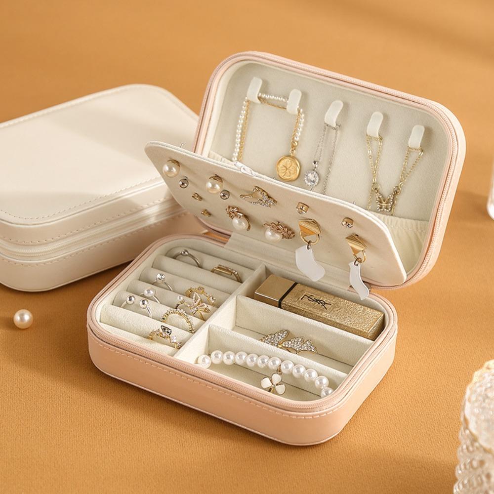 Кожаный органайзер для серег-пуссет на молнии, шкатулка для хранения ювелирных изделий с перегородкой, для серег, колец, большой вместимости, переносная шкатулка для ювелирных изделий