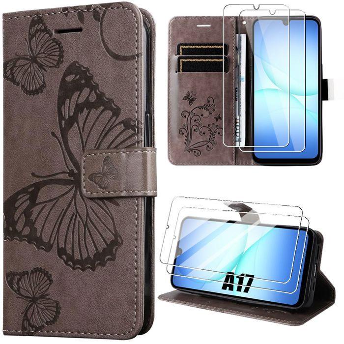 Coque de Protection - BOOLING - pour Samsung Galaxy A17 4G/5G - Cuir PU Relief Papillon Marron - 2 Vitres