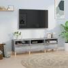 TV Schrank Lowboard 200cm, Modernes TV Board TV-ständer Riffelglastür, Offenes Staufach, Schlichtes Fernsehtisch HiFi-Schrank Holzfarbe & Grau