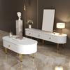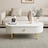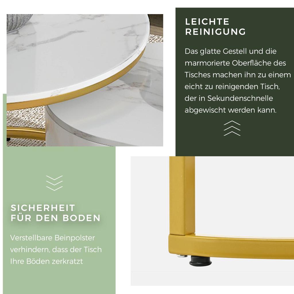 Couchtisch Rund 2er Set Satztische, Moderne Edle Nesting Kaffeetisch Oval Sofatisch Schubladen, Tischplatte Marmormuster, Balkon Büro, Weiß