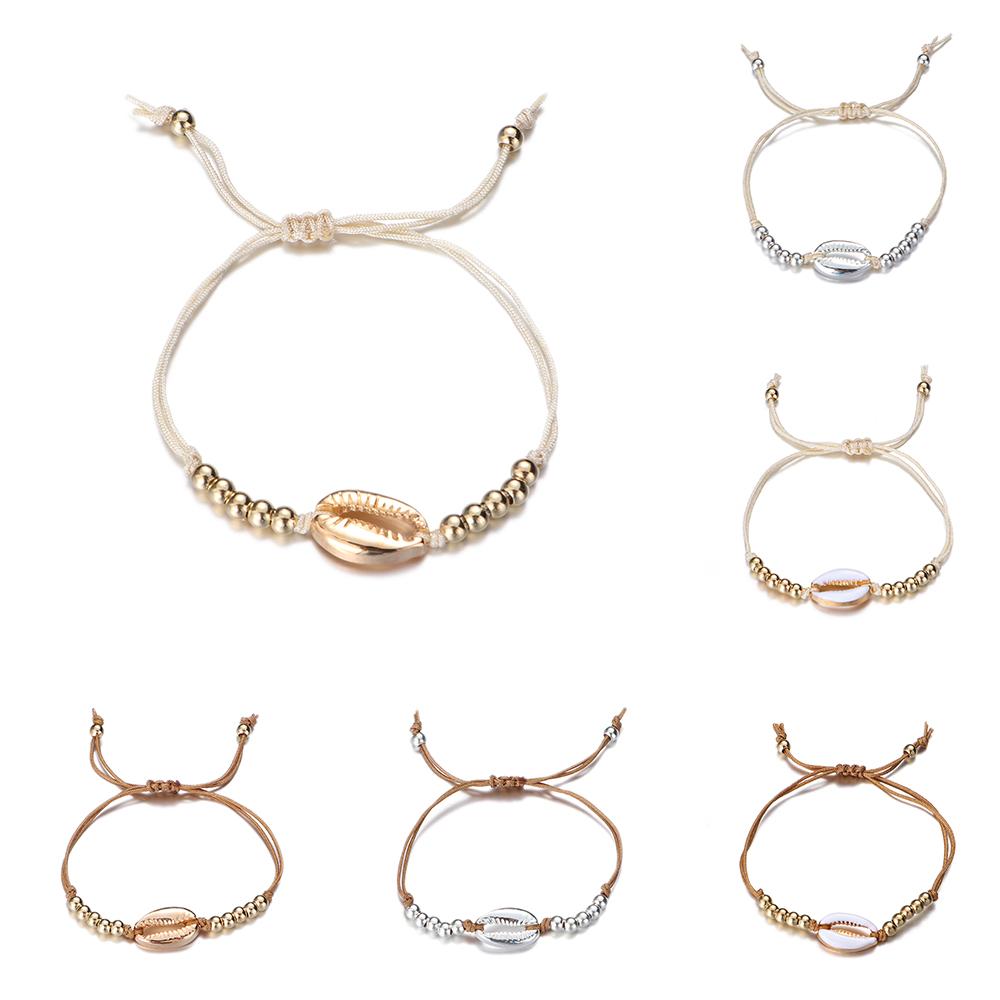 Шарм Подарок Ручная работа Золото Серебро Этническое плетение Веревочные браслеты Богемия Регулируемые браслеты с ракушками