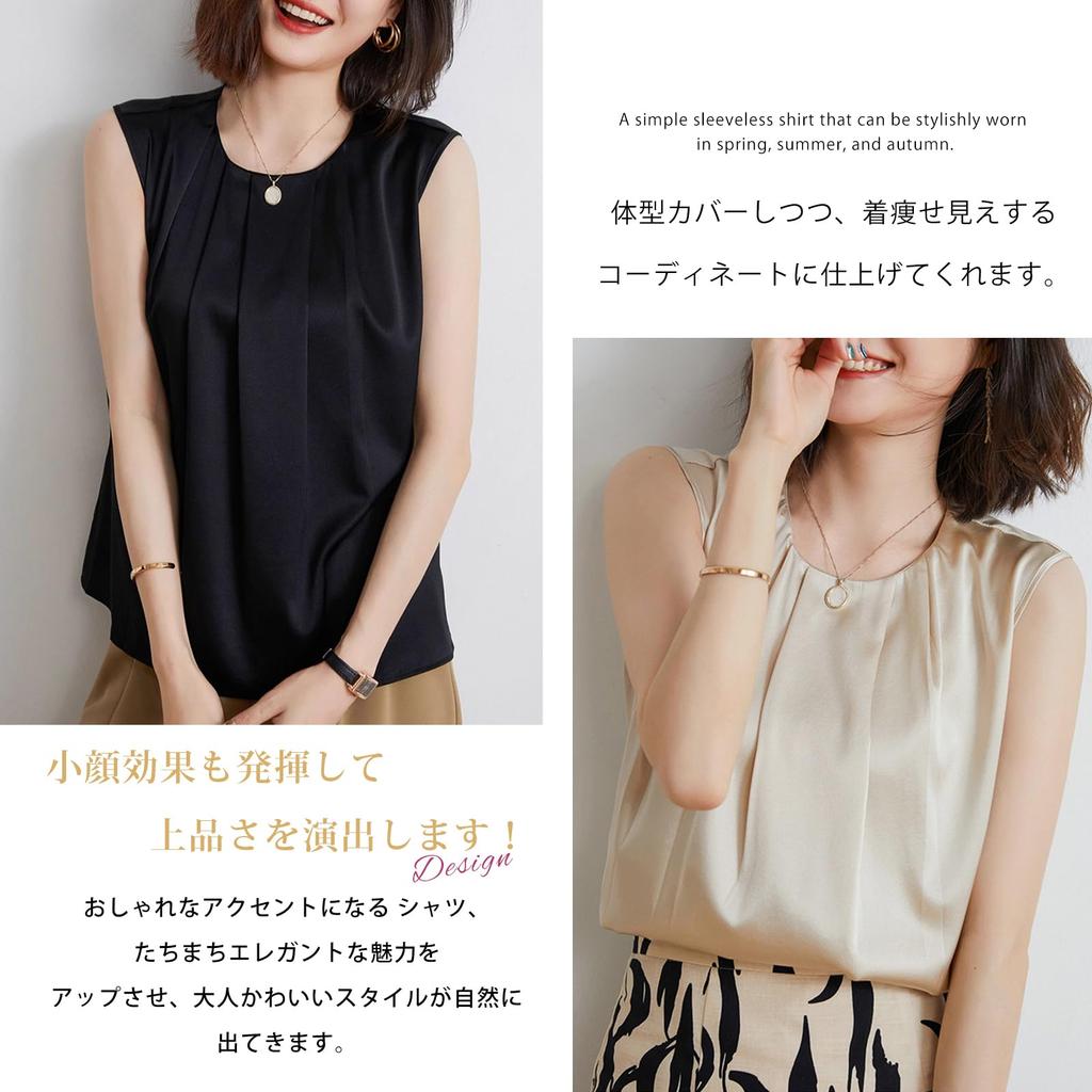 [A sleeveless blouse that's sure to be a hit this summer] Introducing a blouse perfect for sophisticated women! The overall style is simple and chic, with off-the-shoulder, sleeveless design that flatters the hands. The sleeveless design exposes just enough skin for a cool, summery look. This shirt adds a stylish accent, instantly elevating your elegant charm and creating a naturally cute, mature style.
