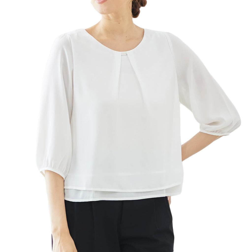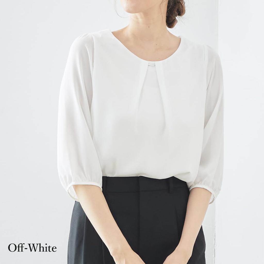 Эта блузка создает мягкий, утонченный и женственный образ, но при этом остается функциональной.. Изготовлено из материала, устойчивого к сминанию, за ним легко ухаживать дома, даже после долгих часов сидения и стирки.. Ткань с эффектом сухости отводит пот от кожи, обеспечивая комфортное ощущение. Его влагостойкая конструкция обеспечивает комфорт даже летом.. Лаконичный силуэт дополняет деловой костюм, создавая утонченный и элегантный образ.. Идеально для тех, кто начинает или возвращается на работу в связи с поступлением ребенка в школу или его выпуском! Идеально подходит для различных случаев: от собеседований до поездок на работу после устройства на неполный, временный или полный рабочий день.. Помимо своего делового appeal, это универсальное изделие достаточно универсально, чтобы носить его на самых разных мероприятиях: от школьных мероприятий для детей, таких как Сити-Го-Сан, вступительных и выпускных церемоний, до полуформальных случаев, таких как свадьбы, after-party и встречи выпускников, и до повседневных выходов в сочетании с джинсами.. Запах в области груди и мотив с серебряной планкой делают эту элегантную блузку. Заправьте его в брюки или юбку для создания аккуратного, сбалансированного и женственного образа.. Также рекомендуется носить его заправленным в пиджак для стиля, подходящего для поездок на работу.