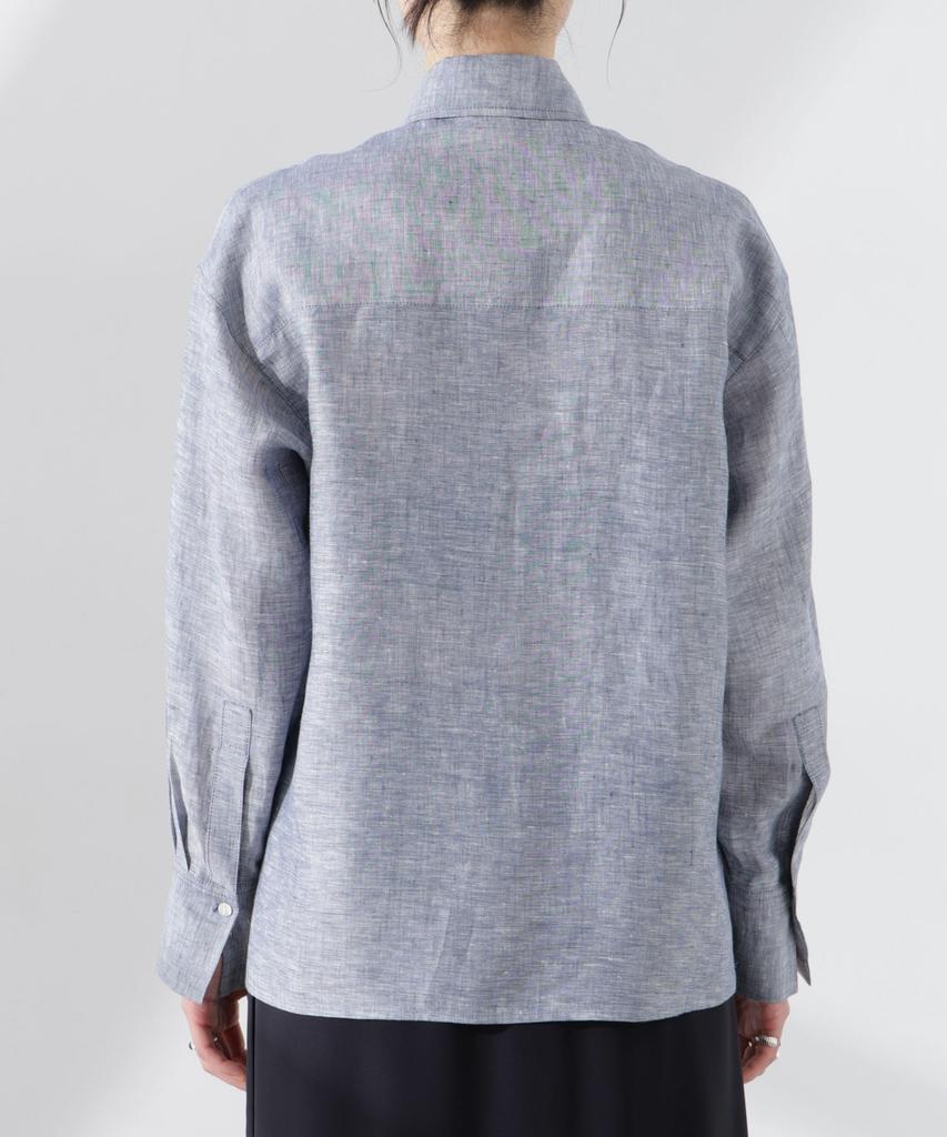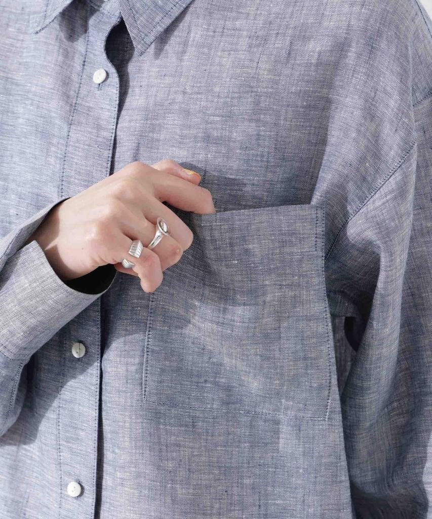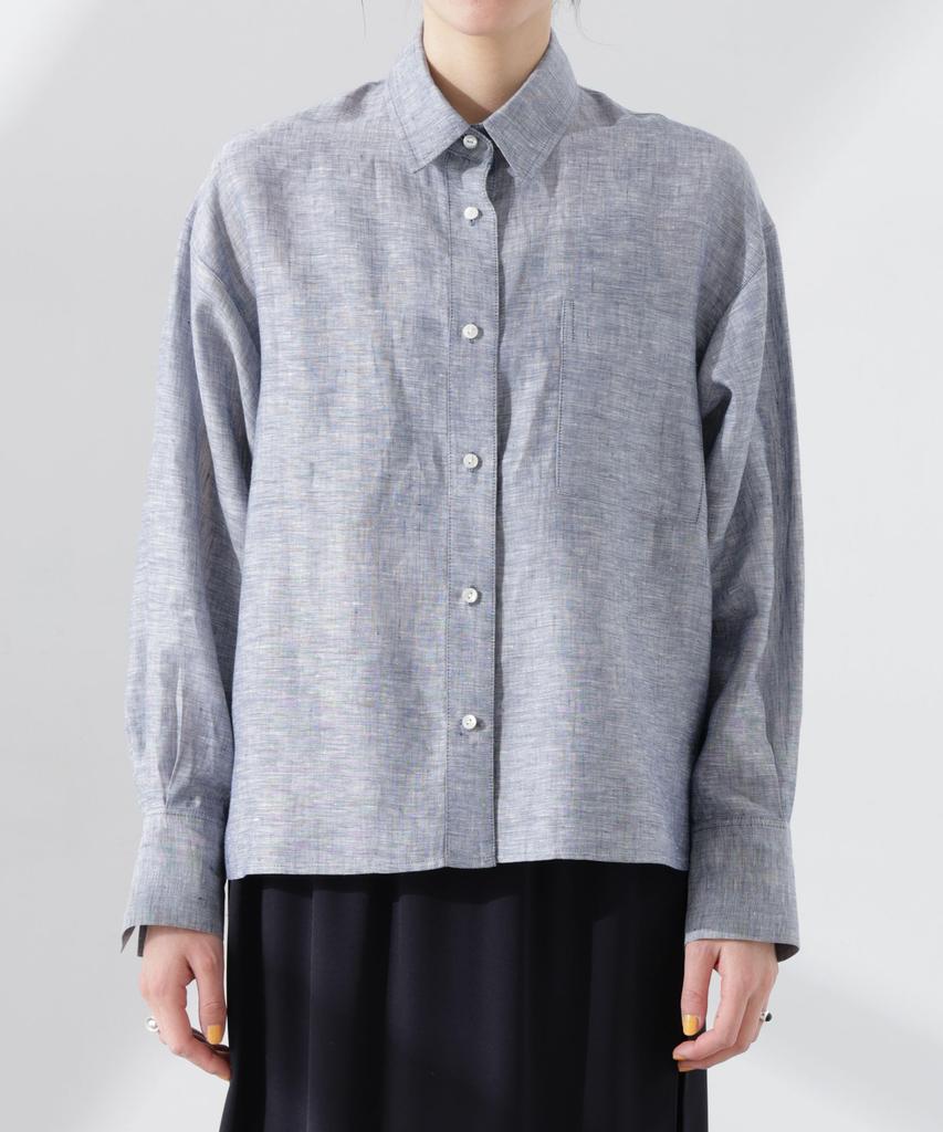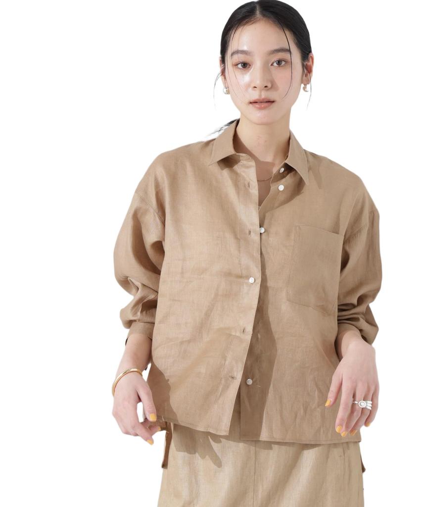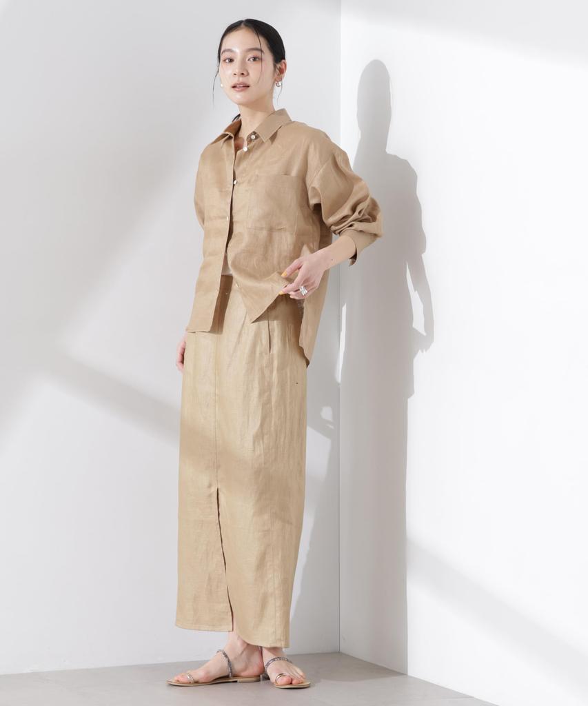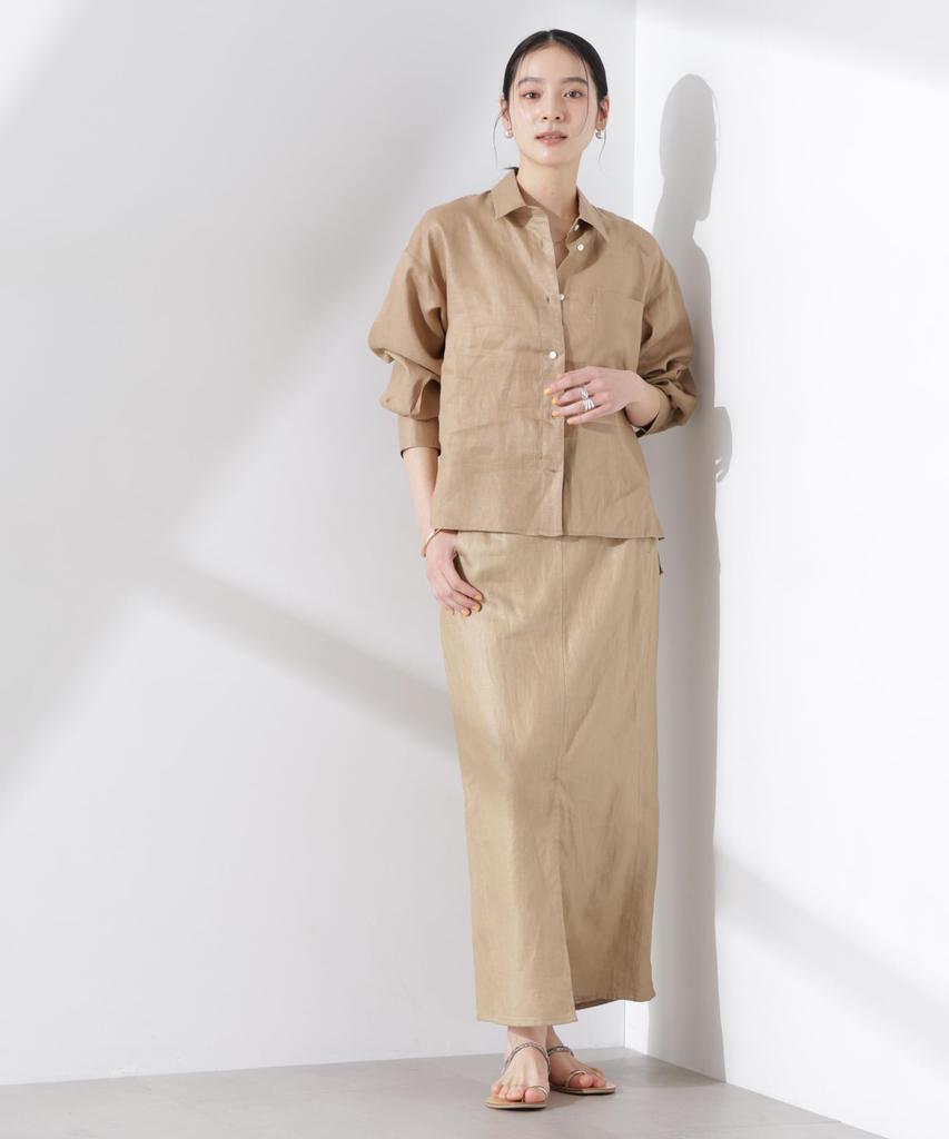 [2025 SS] NANO universe: This overshirt is made from cool linen fabric. The length is shorter than last year's, giving it a clean look when worn over other items. It pairs perfectly with the skirt from the same series for a stylish, on-the-job look.