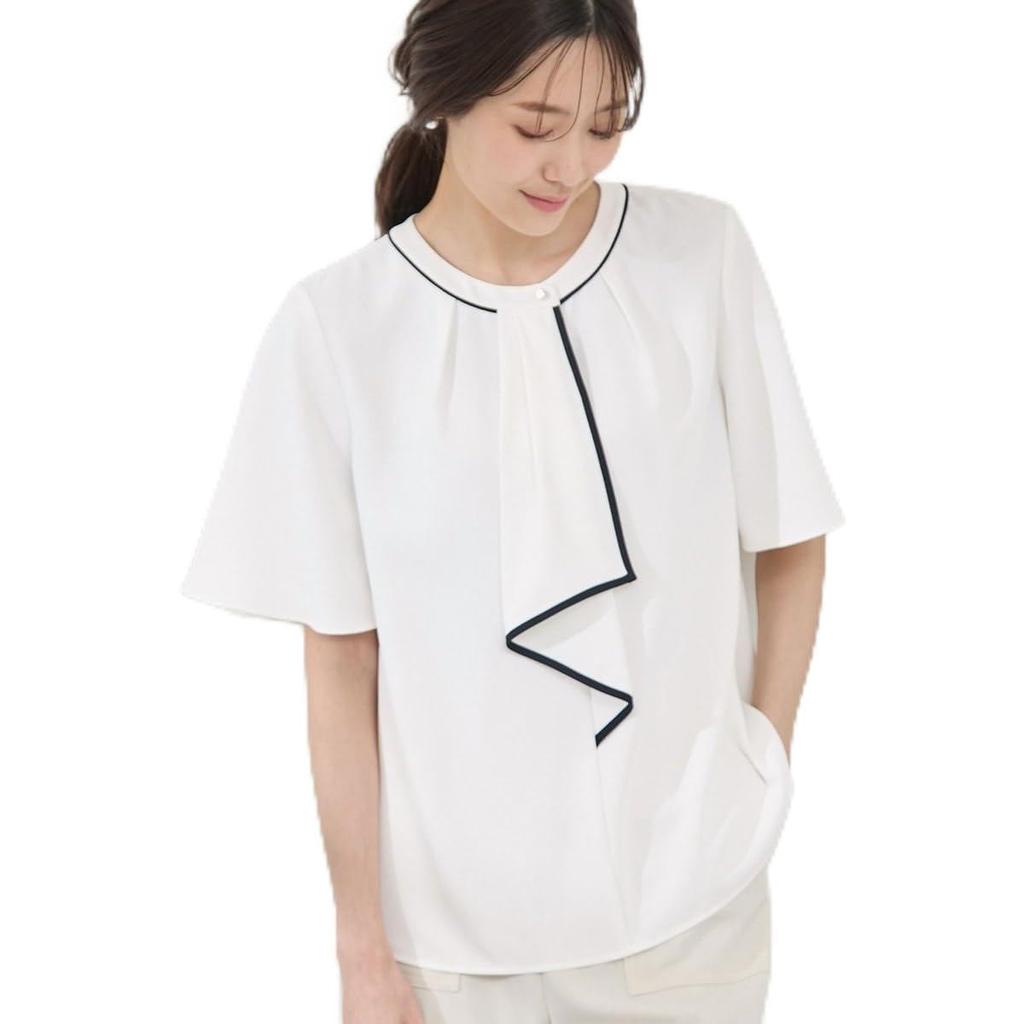 ROPE PICNIC Blouse Half Sleeve White [WEB-EXCLUSIVE SIZE] Color-Coordinated Bowtie-Style Blouse/Commuter-Friendly, Women's, (12)