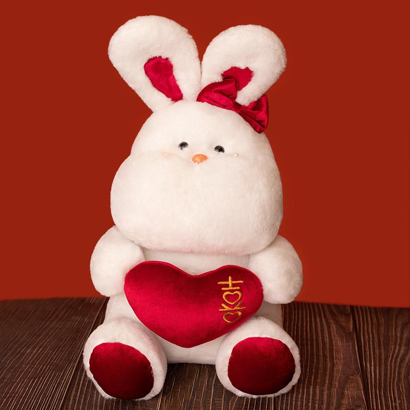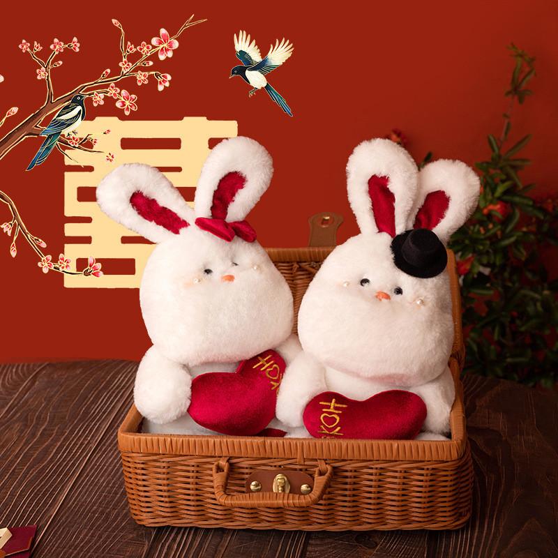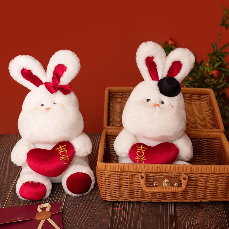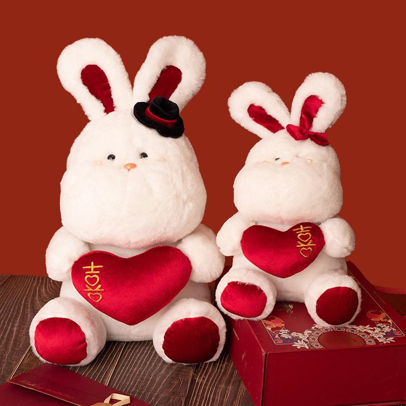 Rabbit Bow Plush Dolls Hat Bunny Stuffed Toy Couple Wedding Decorations Gift