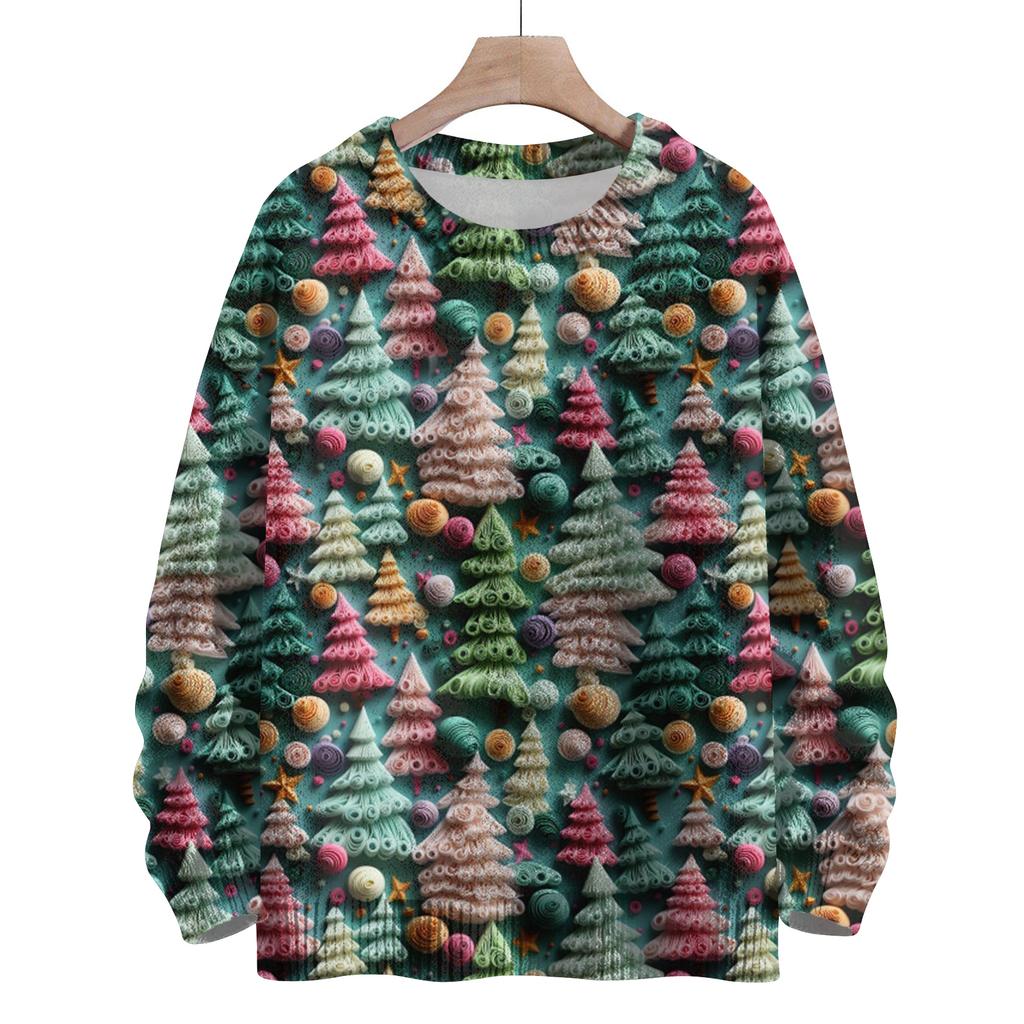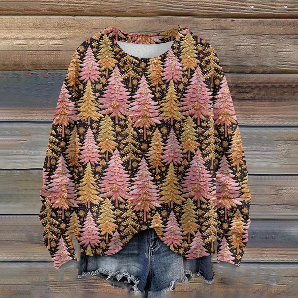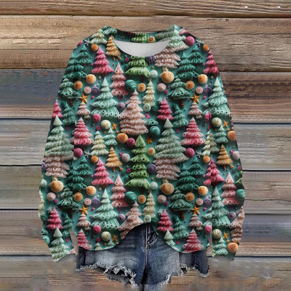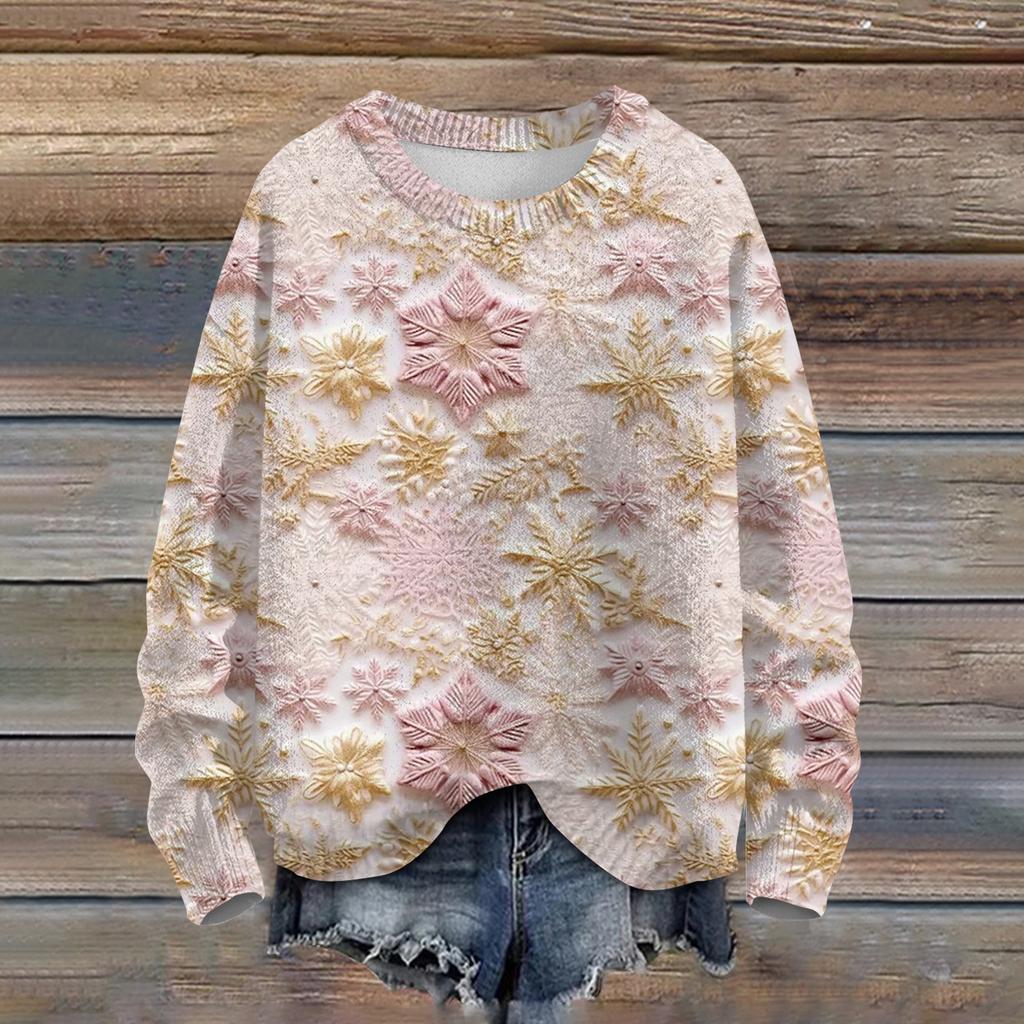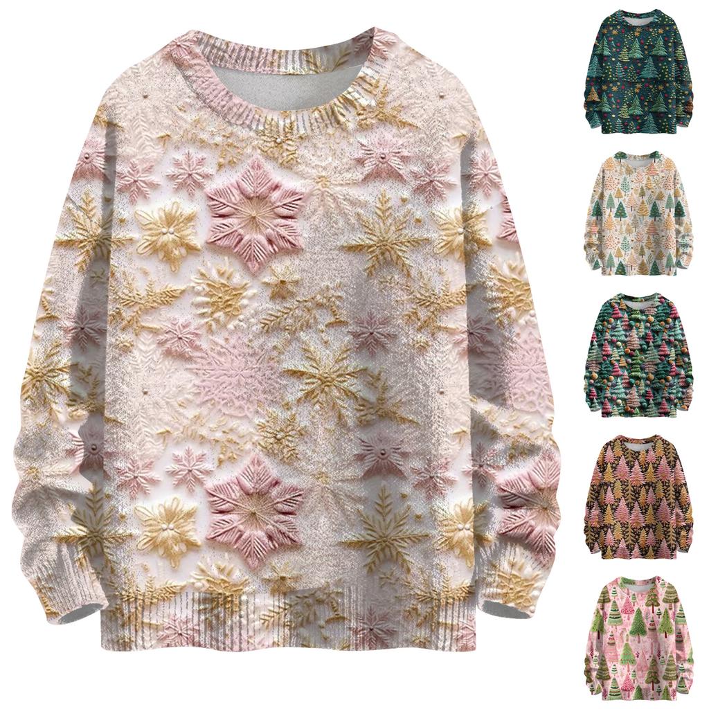 Женский модный повседневный трикотажный свитер с длинным рукавом и рождественским принтом, круглый вырез