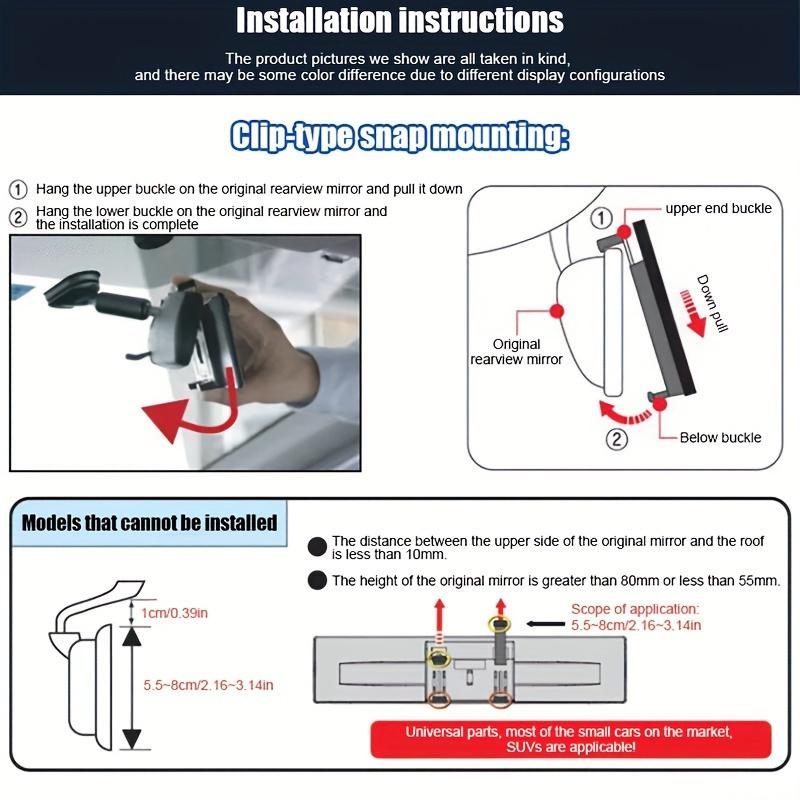 Широкоугольное зеркало заднего вида - Устойчивое к запотеванию и не дающее бликов, Изогнутое стекло для видимости - Премиальный автомобильный аксессуар для интерьера