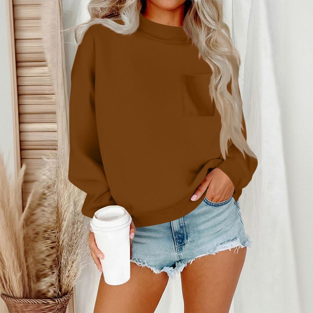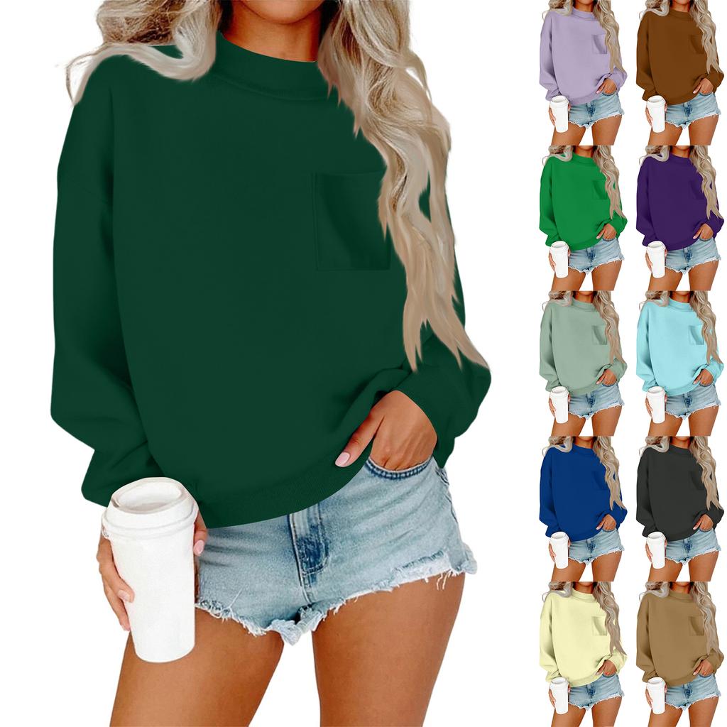 Женский повседневный модный свитшот с круглым вырезом и длинными рукавами с карманами