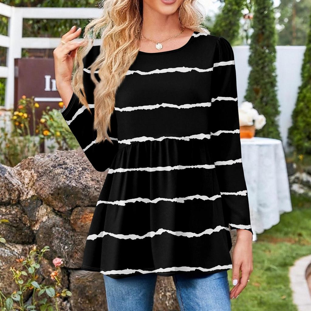 Женская повседневная модная рубашка с длинным рукавом, полосатая туника
