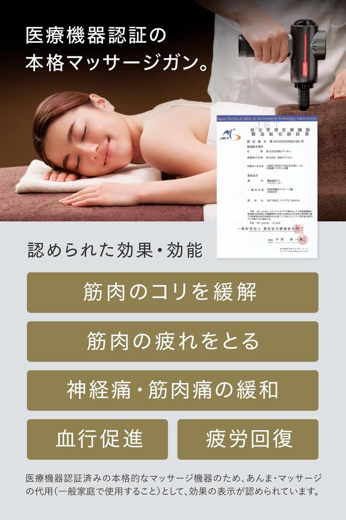 MYTREX REBIVE2 - Mytrex Revive 2 - / Медицинское изделие с регулированием [Номер сертификации: нет. 307AKBZX00001000] / Номер продукта: MT-RB2-24M / Размеры: приблизительно. 154мм x 60мм x 189мм (Только основной блок) / Масса: приблизительно. 729 г (Только основной блок) / Материалы: Основной блок: ПК + АБС, поликарбонат, силикон, алюминиевый сплав; Вложения: Смола АБС, смола ЭВА, силикон / Содержимое упаковки: Основной блок x 1, USB-кабель для зарядки x 1, адаптер переменного тока x 1, насадки x 5, инструкция по эксплуатации x 1, футляр для хранения x 1, резиновый фиксатор для насадок (запасной) х 2