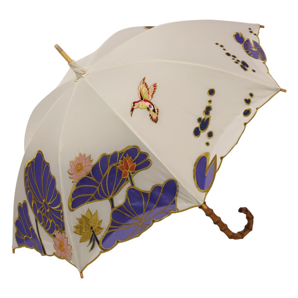 Уникальный, красиво вышитый зонт из органзы, созданный в сотрудничестве с киотским художником-монументалистом Кияном.