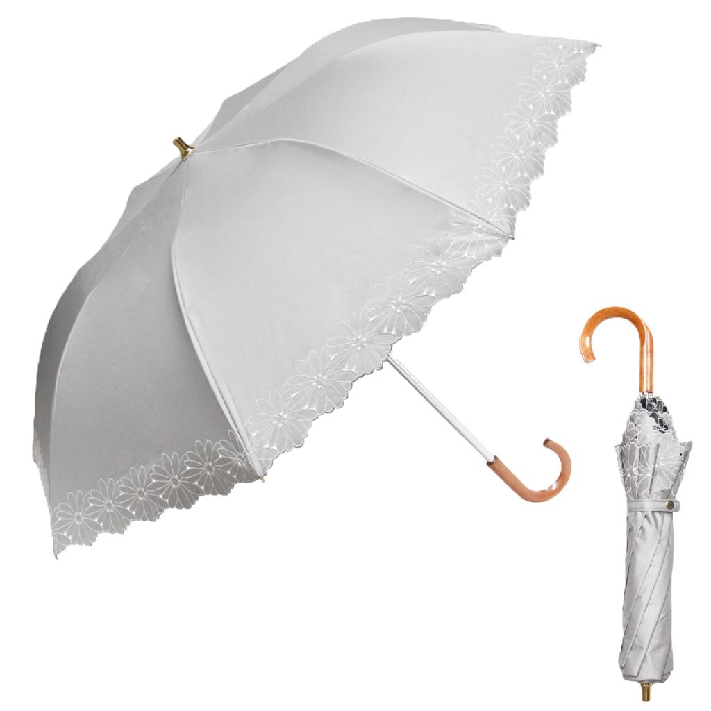 [Elegant sheer design] This elegant umbrella features a sheer, elegant design with floral bowler embroidery at the bottom. Available in four colors: black, navy, beige, and gray.