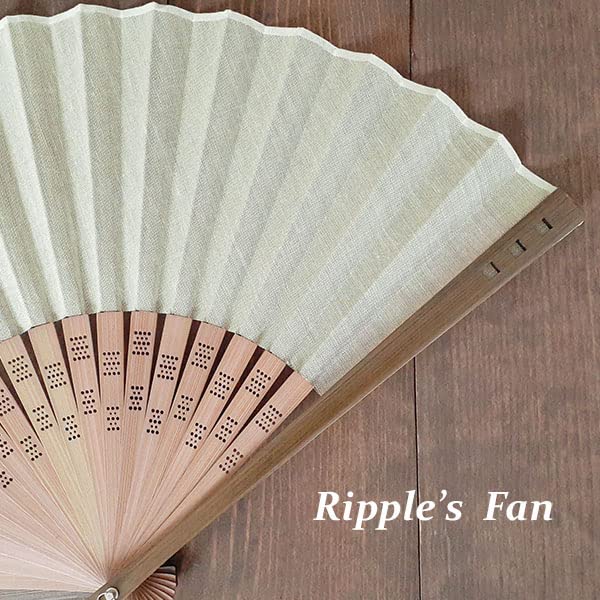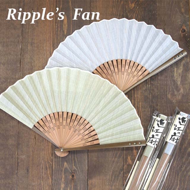 Веер из льна Оми цвета фисташки Ониси Масару Сейхан, 23 см, "Рябь" 78-05