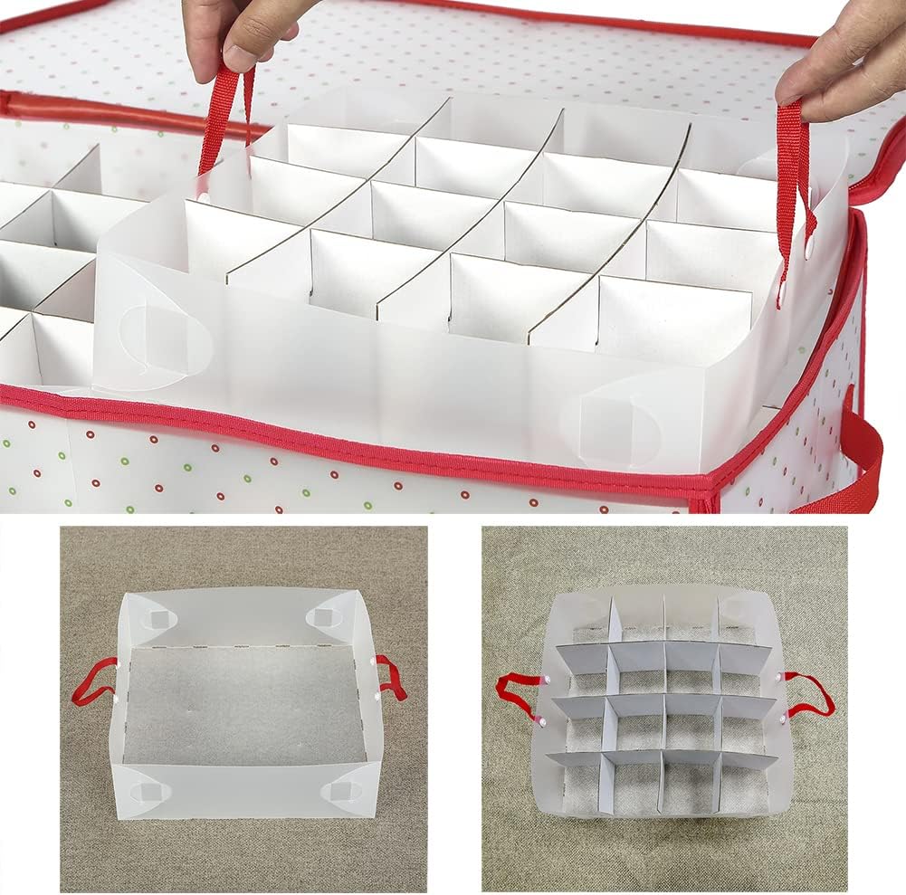 Пластиковый ящик для хранения рождественских украшений с застежкой-молнией. Ячейки для 128 праздничных украшений 3 дюйма. Вмещает 128 рождественских праздничных украшений.