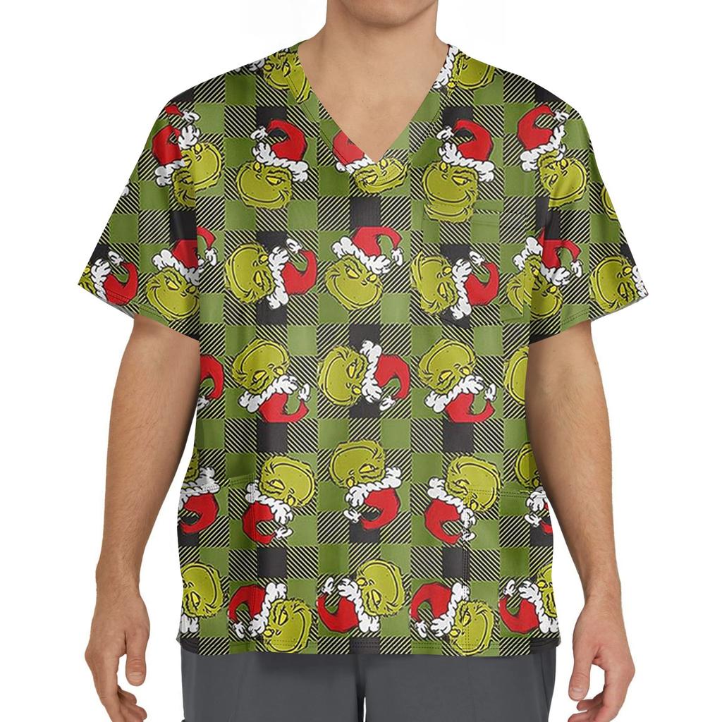 Мужской топ с коротким рукавом, V-образным вырезом и принтом, нагрудным карманом