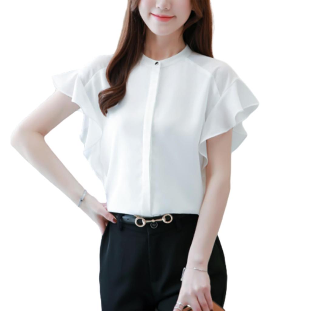ORWZDCO Chiffon Blouse with Ruffled Solid Round Open Loose Perfect for the and Summer Women's Sleeves, Color, Neck, Front, Sheer, Fit, Flattering,