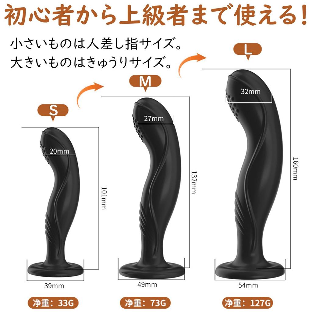 [Suitable for beginners to advanced users!] S: Total length 101mm, diameter 20mm, weight 33g. M: Total length 132mm, diameter 27mm, weight 73g. L: Total length 160mm, diameter 32mm, weight 127g. Three sizes are available, so even beginners can use them gradually without feeling any pain. Start with the smallest size and gradually get used to it. The smallest size is the size of an index finger, perfect for your first anal challenge. The larger size is the size of a cucumber. Available in three sizes, this product is suitable for beginners to intermediate users.