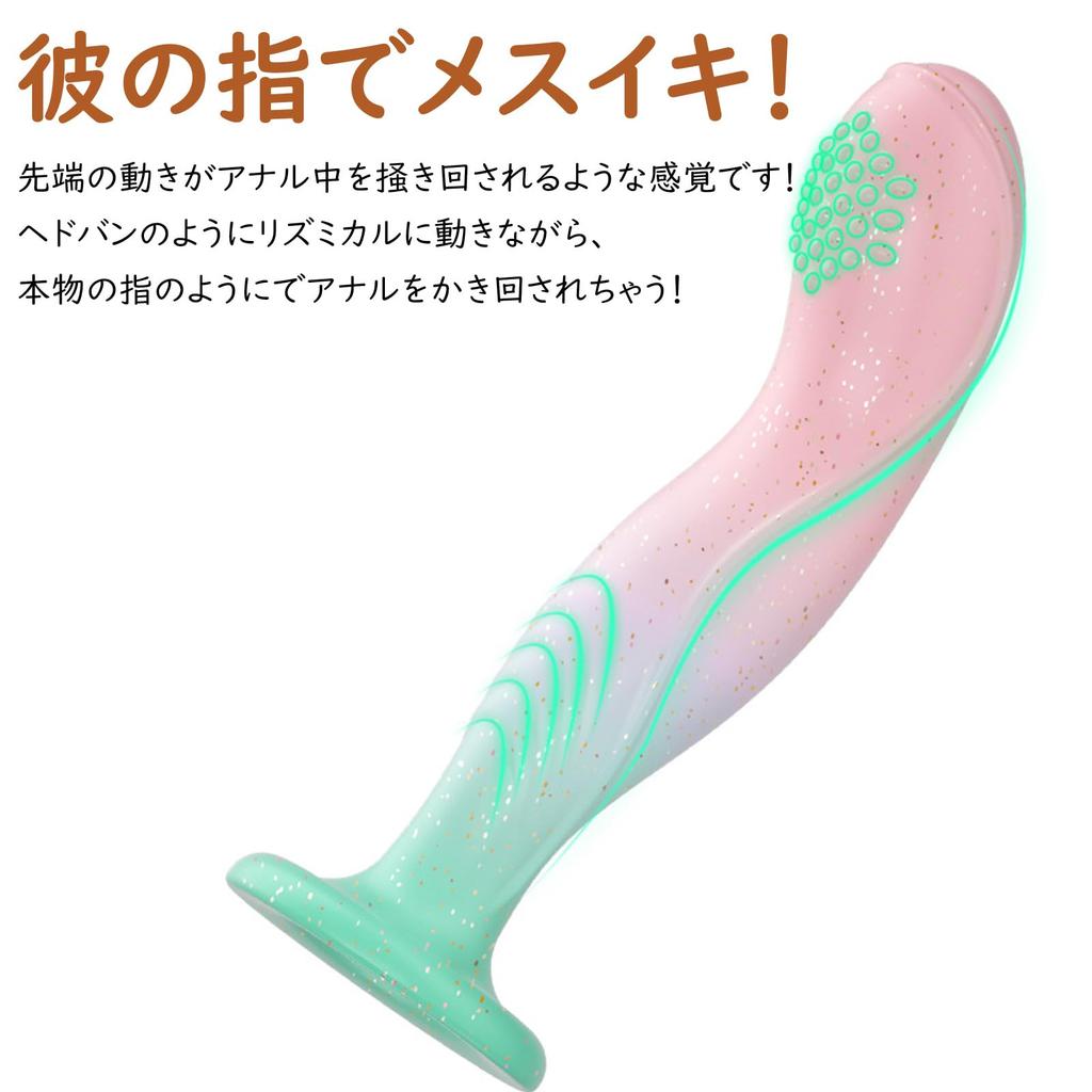 [Reproduces the angle of a finger] The tip of the toy bends like a finger, with bumps and grooves that curve toward you, allowing you to find your spot. The gradual wave of pressure on the tip as it bends creates the ultimate anal stimulation. Use it to stimulate your partner's anal area and embarrass them during anal play.
