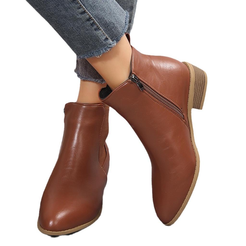 Ботинки Мартин большого размера женские осенне-зимние новые на низком каблуке низкие с боковой молнией короткие ботинки
