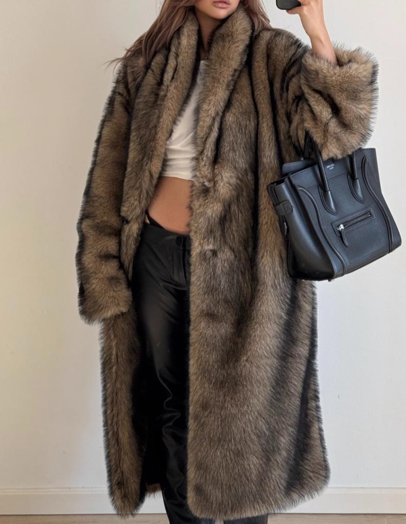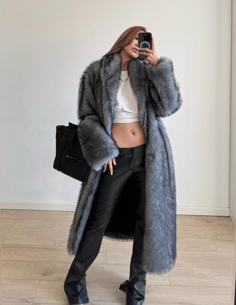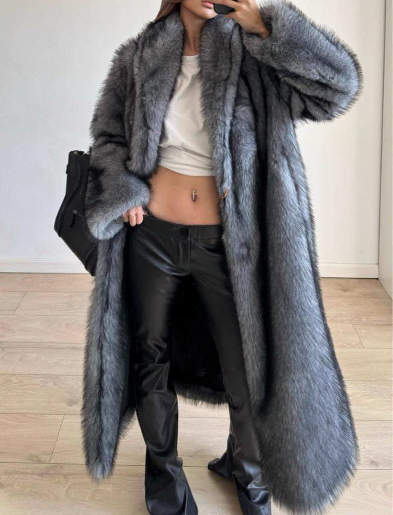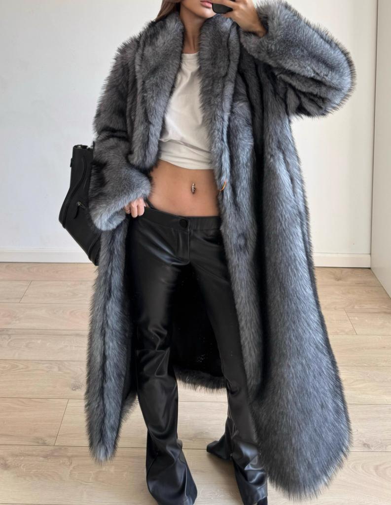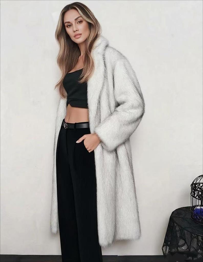 Женское пальто из искусственного меха, зимнее теплое с лацканами, с длинными рукавами, большого размера, кардиган, толстое длинное пальто