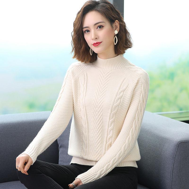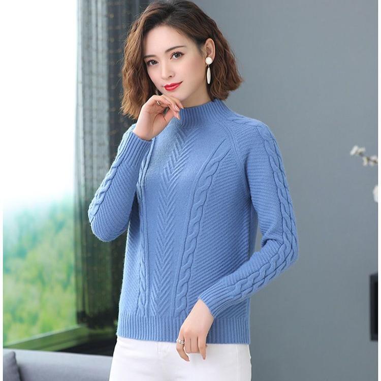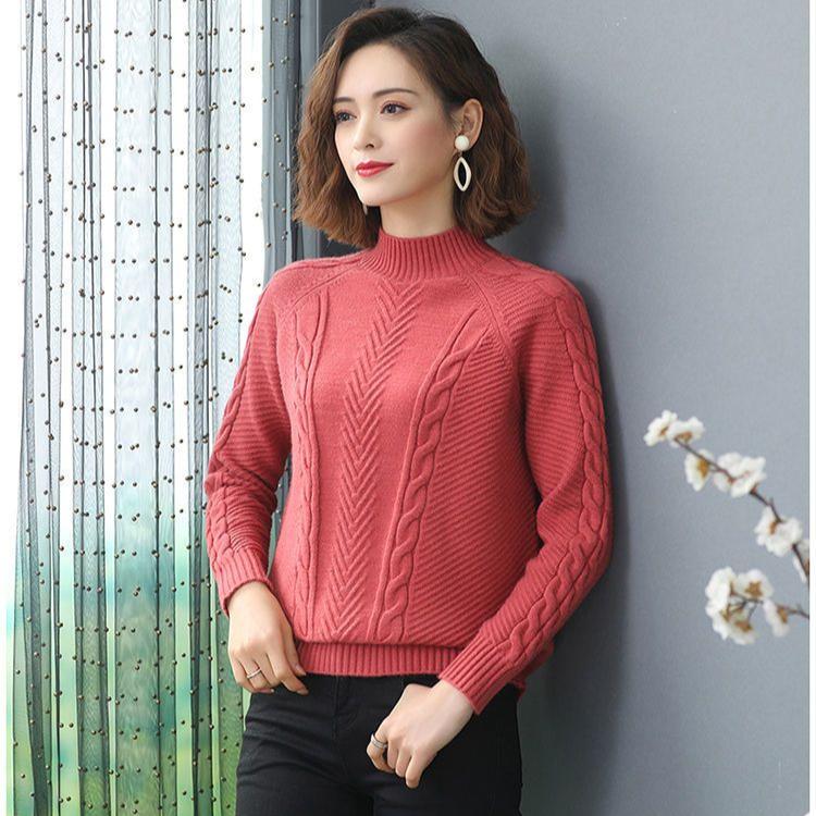 Женский короткий свитер, утолщенный вязаный свитер, свободный пуловер с полувысоким воротником, базовый свитер однотонной расцветки