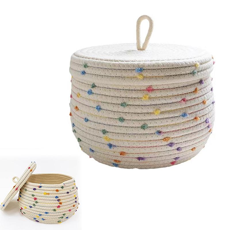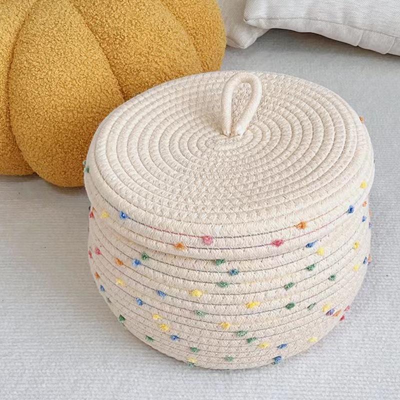 Корзина для хранения из хлопковой веревки с крышкой, настольный ящик для хранения ключей, плетеная корзина для хранения косметики, нижнее белье