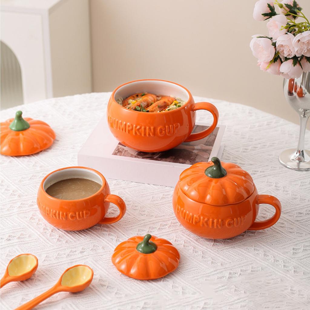 Милая кружка-тыква, керамическая кружка, кружка для молока, супа, завтрака, оригинальная, персонализированная, мультяшная кружка с крышкой