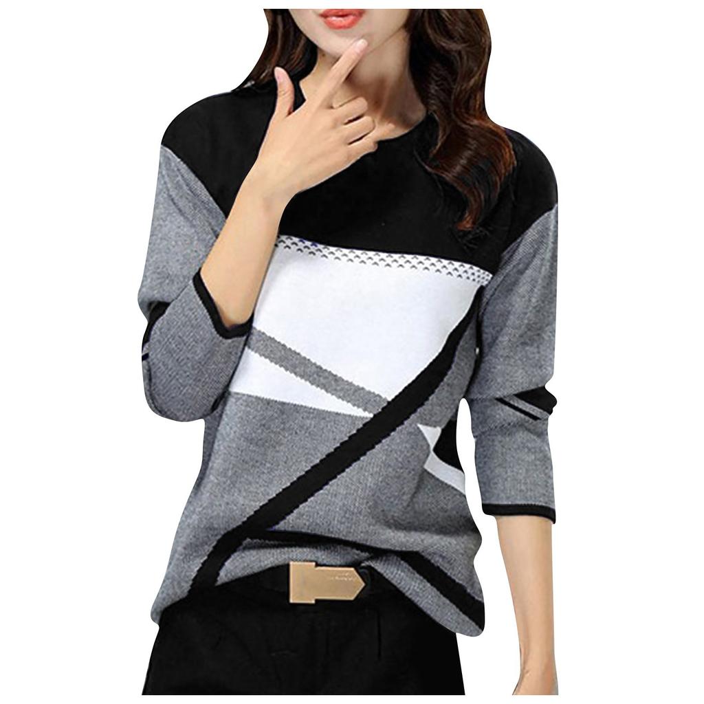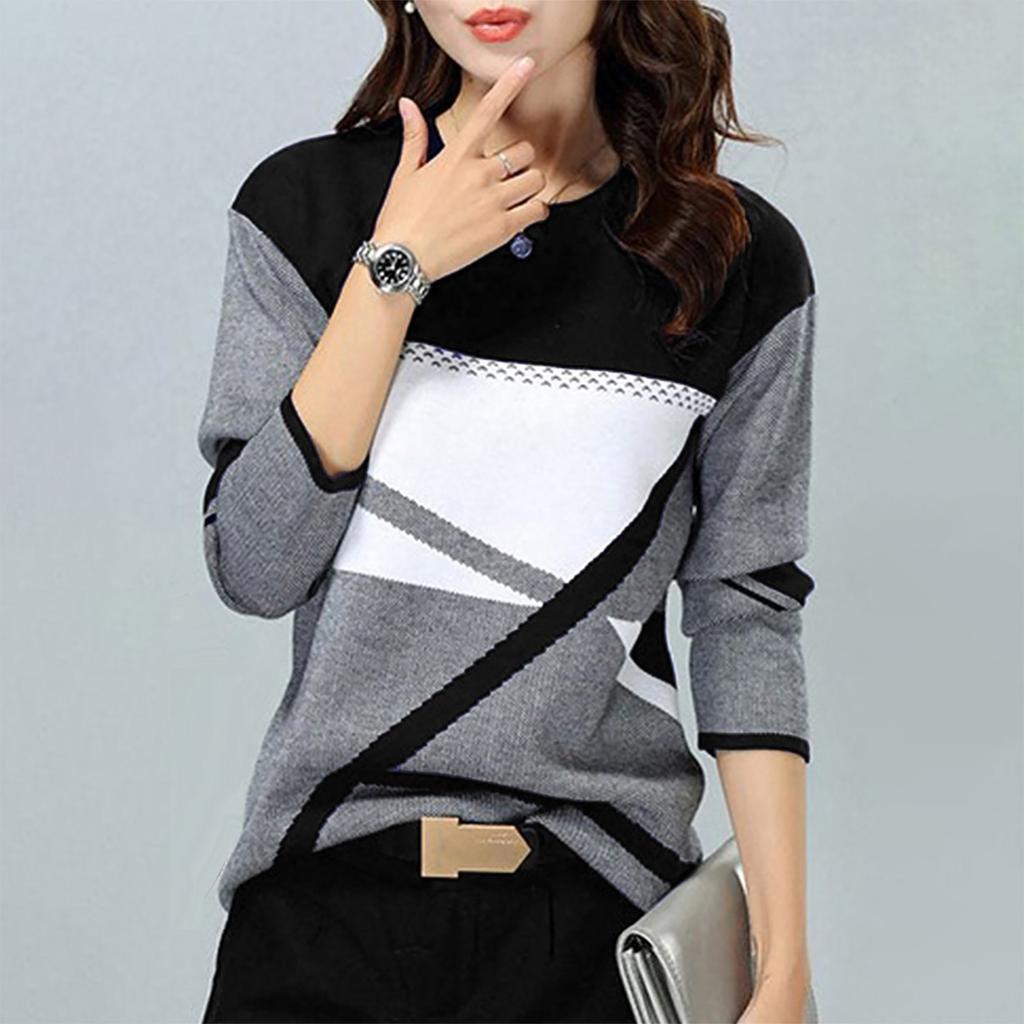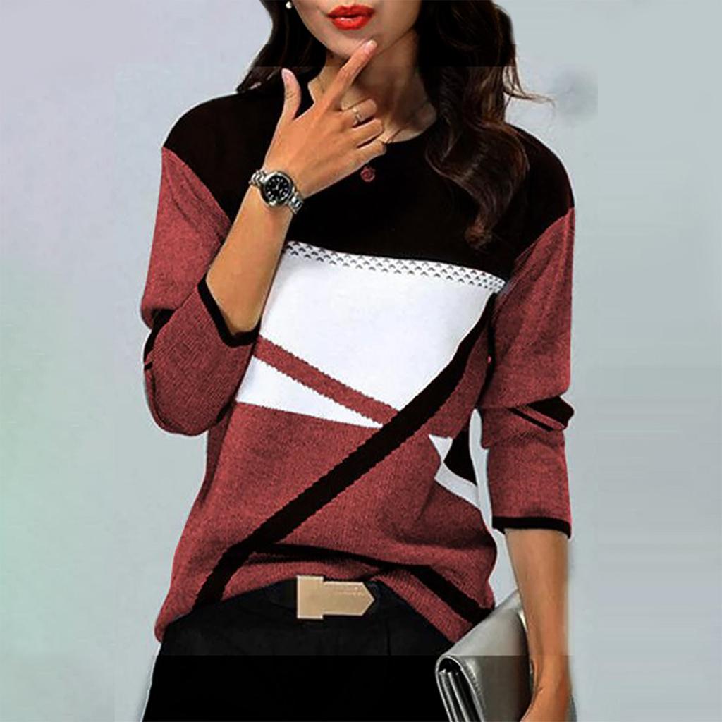 Женская зимняя мода с контрастным позиционированием с принтом с круглым вырезом и длинным рукавом